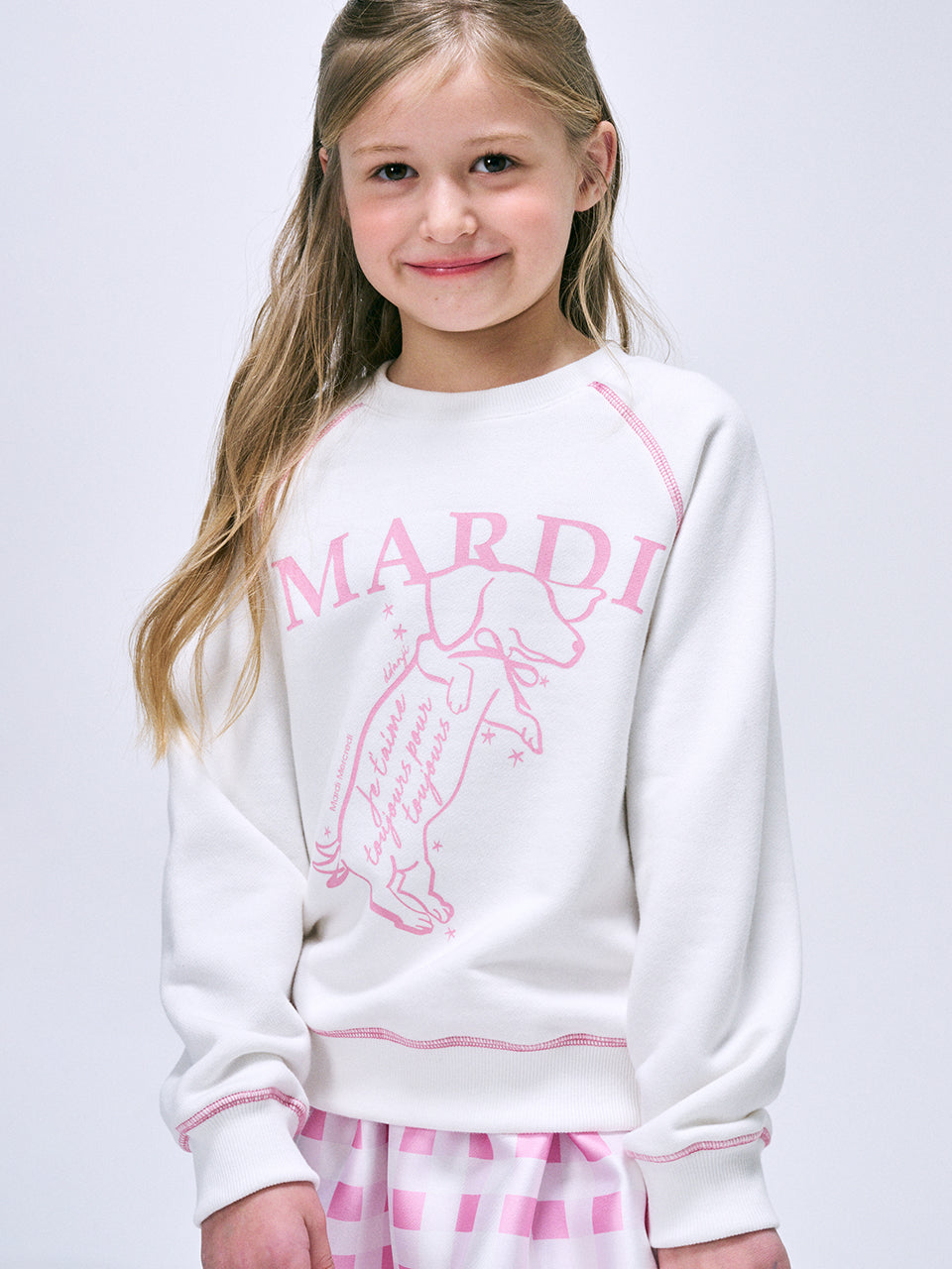 KIDS SWEATSHIRT SWING THE TAIL DDANJI_WHITE PINK
