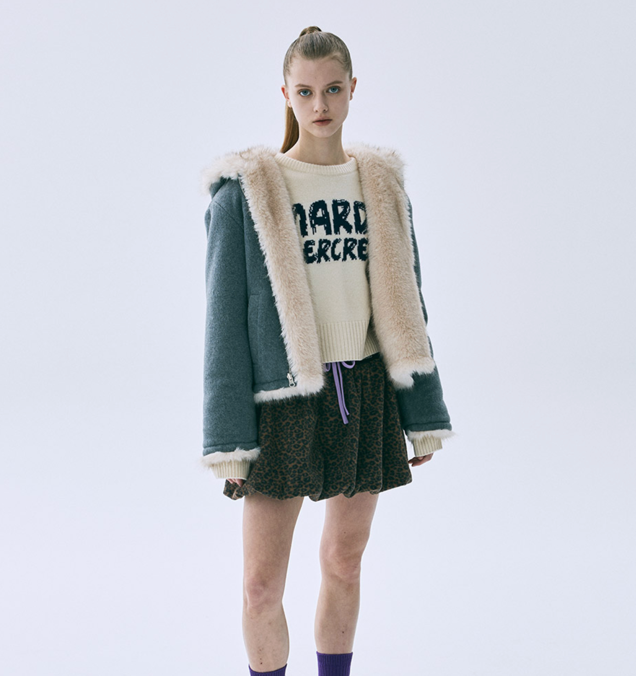 MARDI FUR FLEECE JACKET REVERSIBLE_CHARCOAL