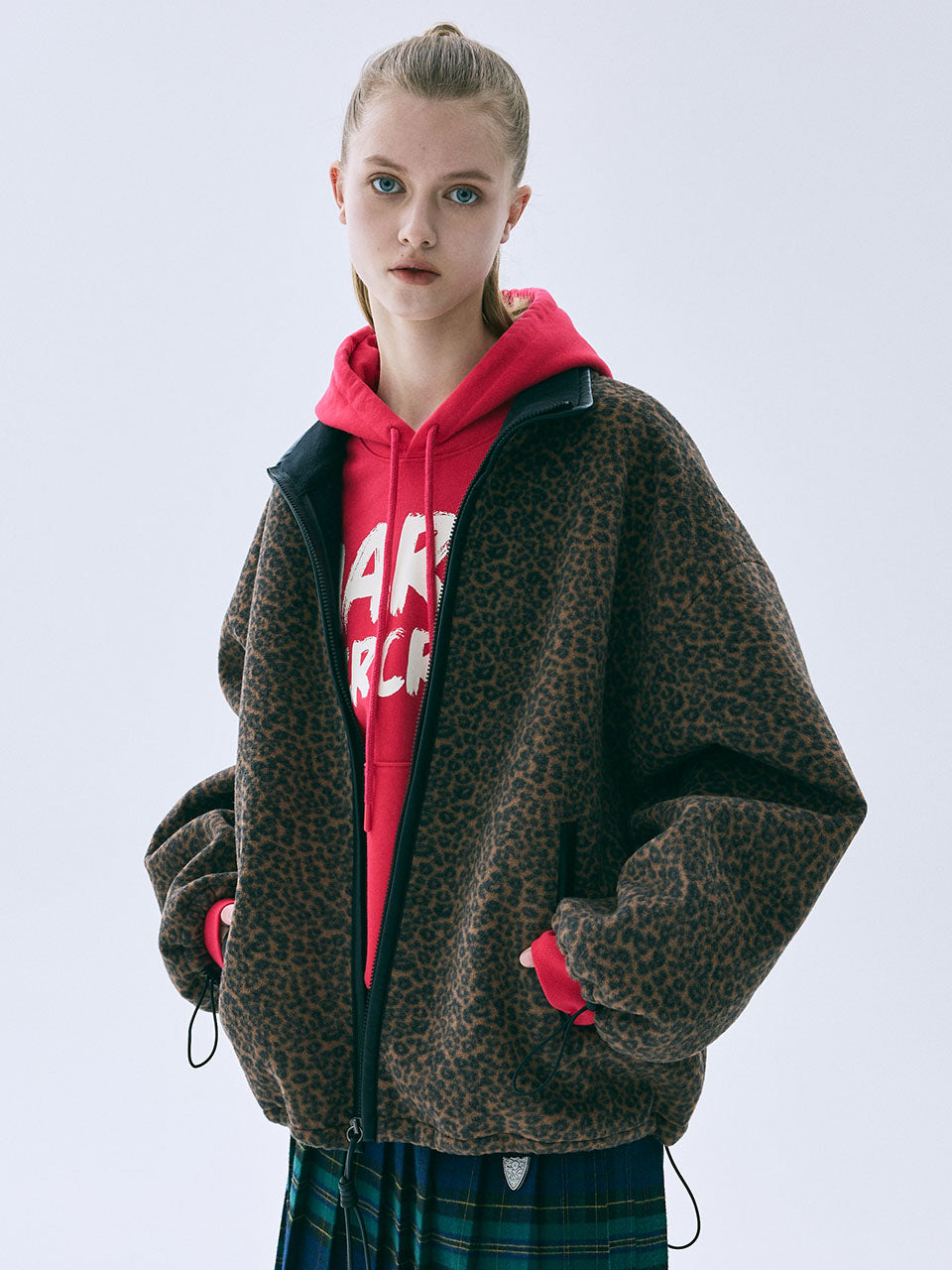 MARDI LEATHER TRIM FLEECE JACKET_BROWN