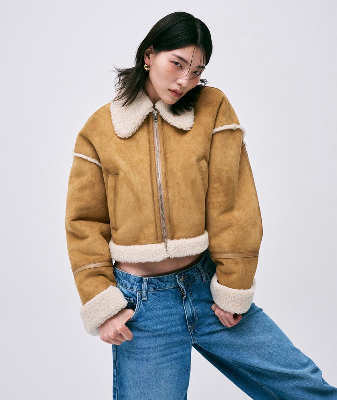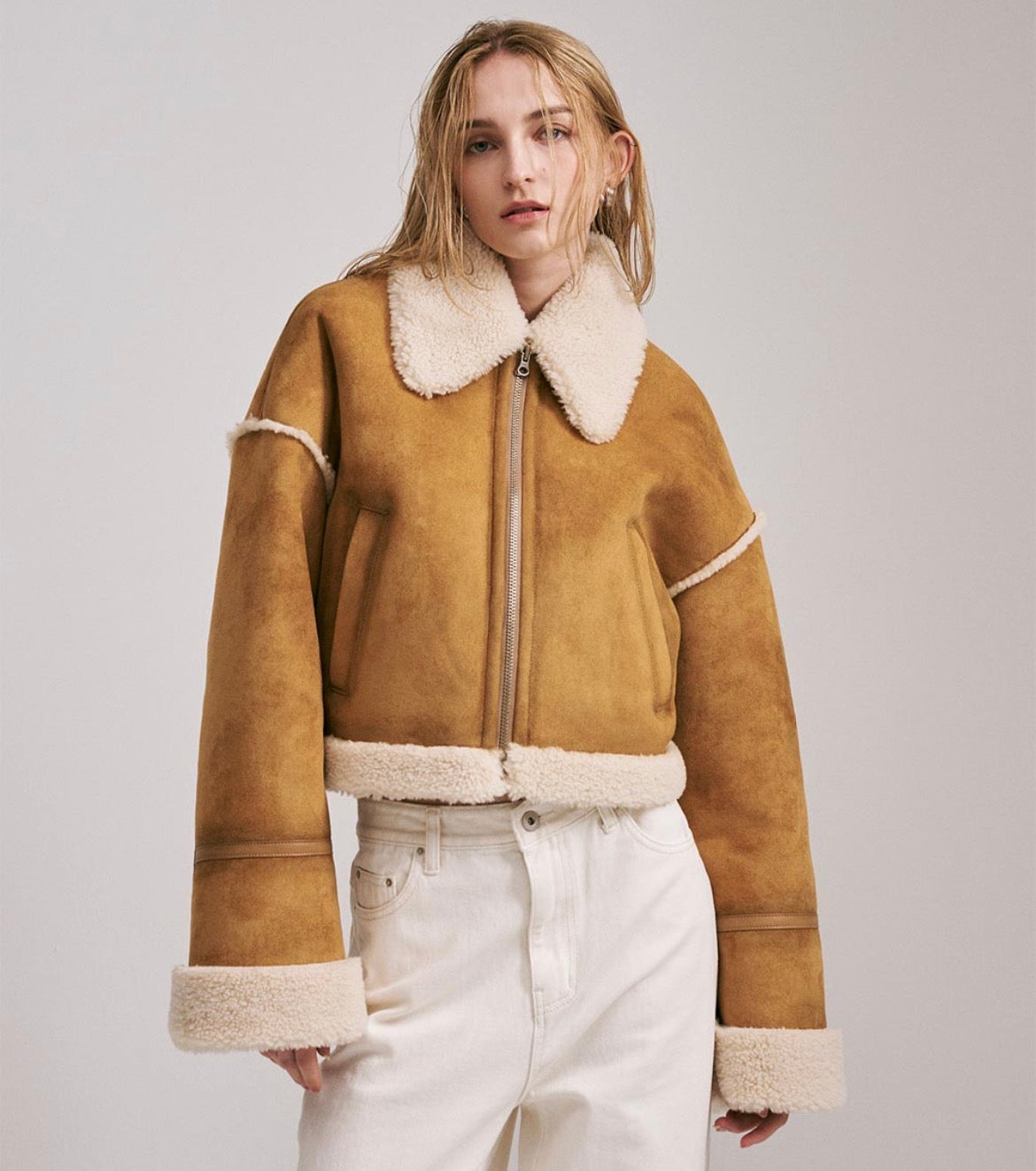 MARDI SHEARLING CROPPED MUSTANG JACKET_CAMEL