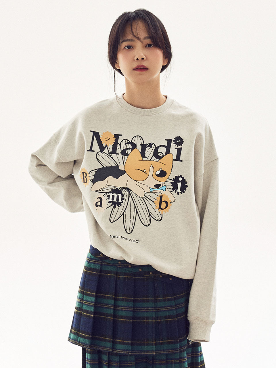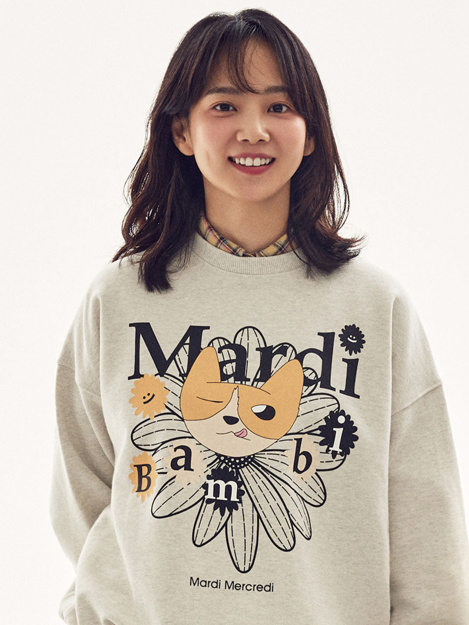 Preorder MARDI SWEATSHIRT FLOWERMARDI BAMBI 01_OATMEAL BLACK
