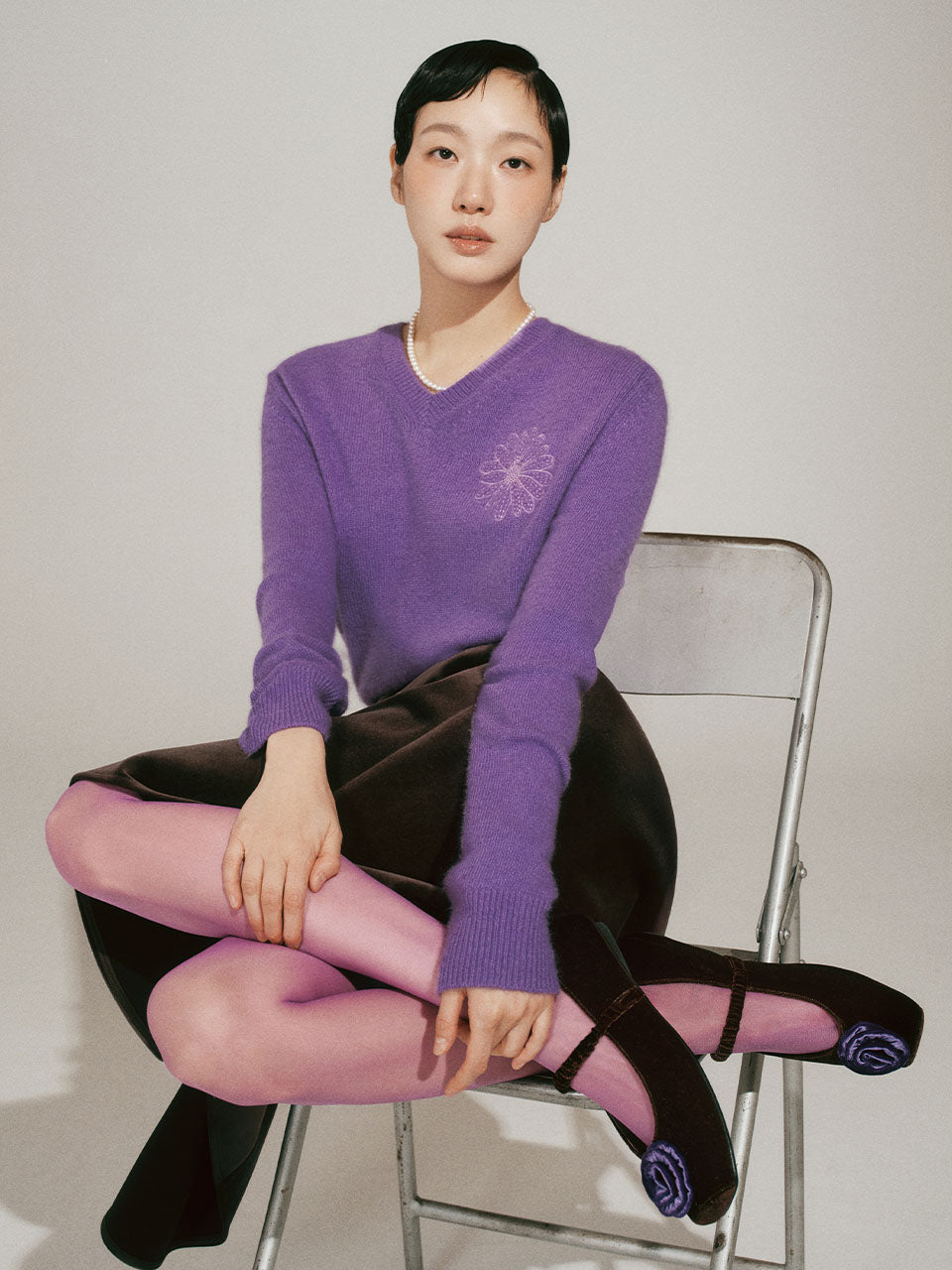 Add MARDI CASHMERE BLENDED CARDIGAN PUFF SLEEVE_GREY PINK to the cart