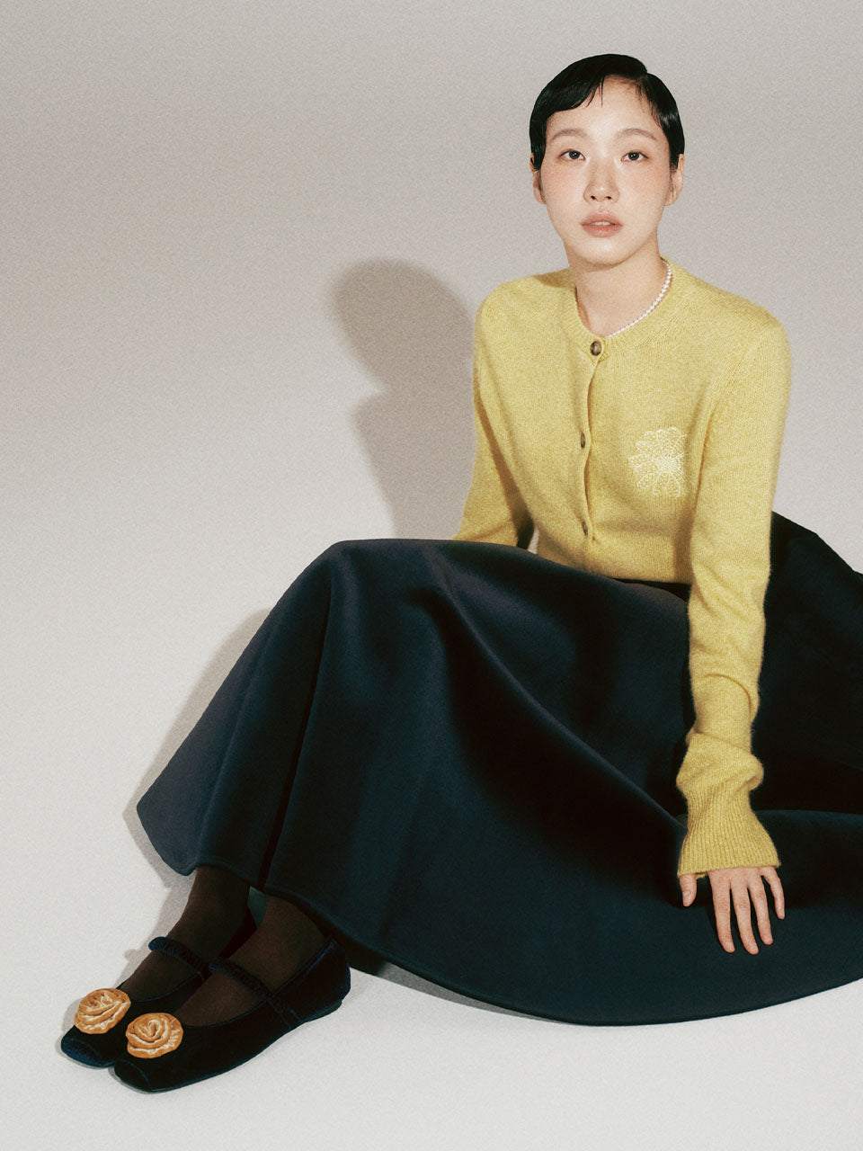 Add MARDI CASHMERE BLENDED CARDIGAN PUFF SLEEVE_IVORY MINT to the cart