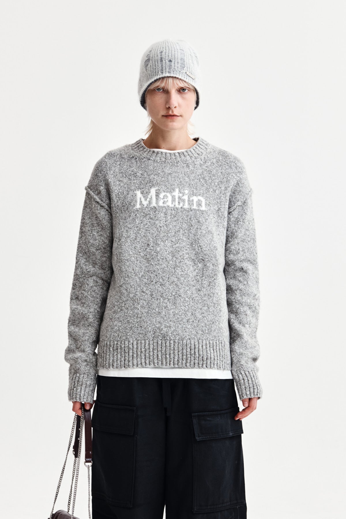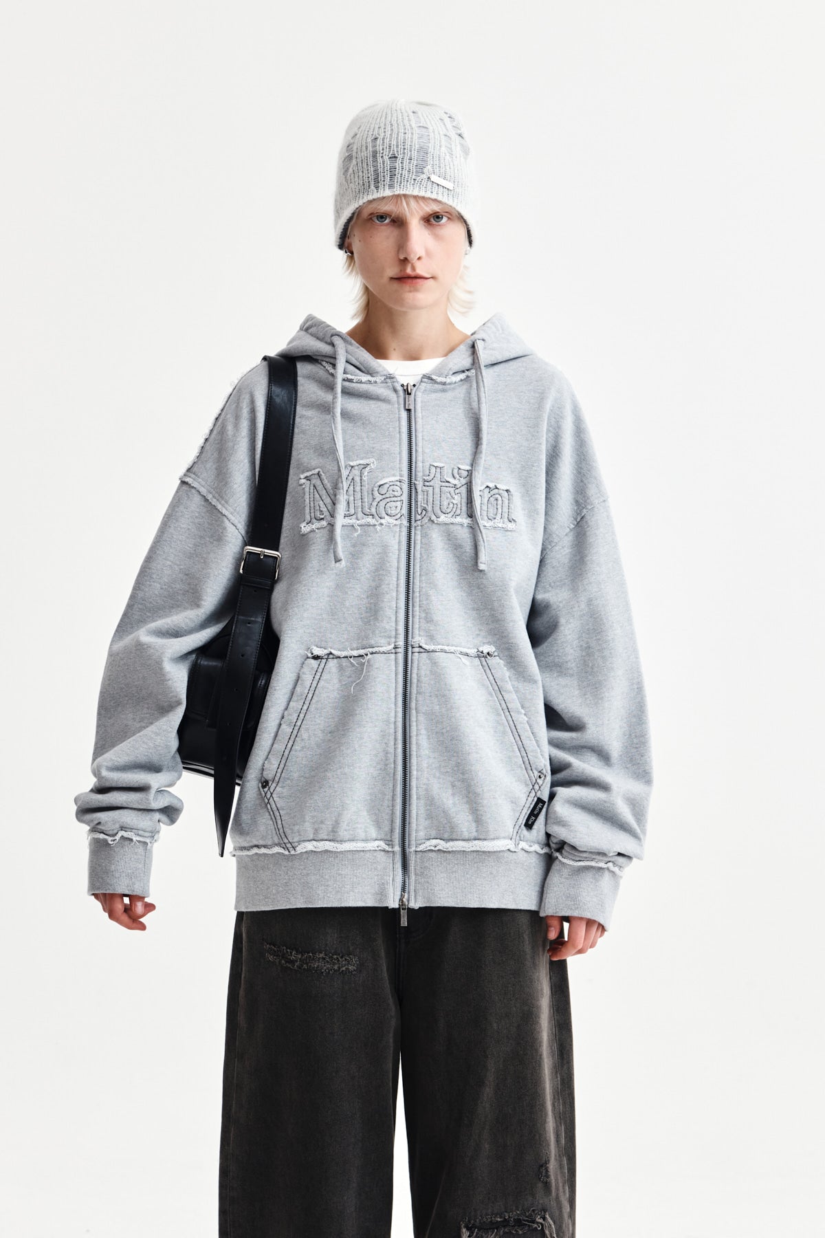 Add MATIN KIM HAIRY HIGH NECK ZIP UP JUMPER IN LIGHT GREY to the cart