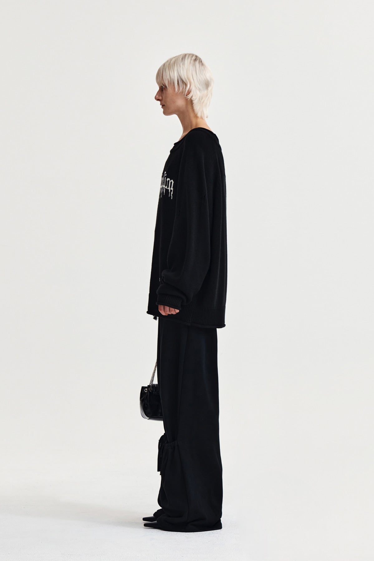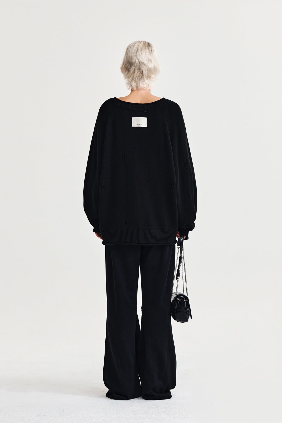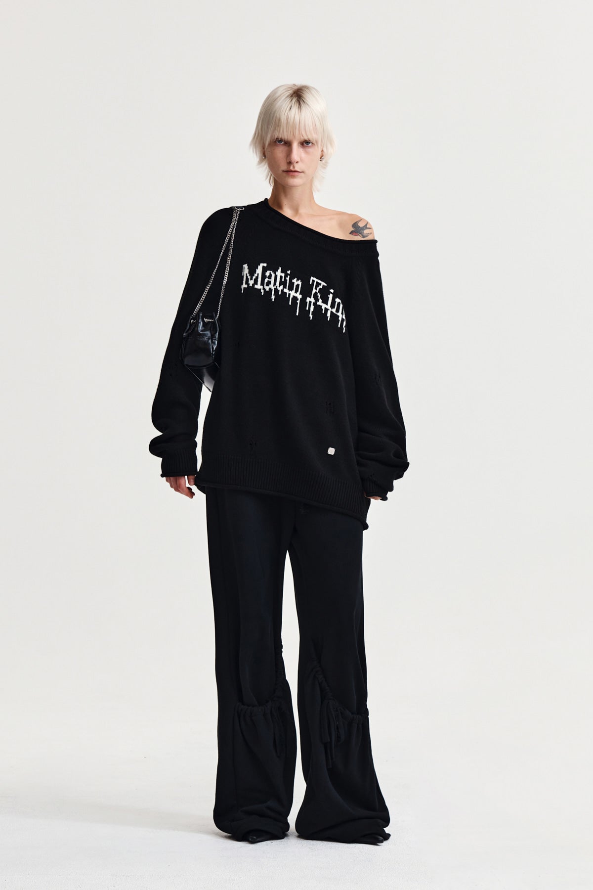 MATIN KIM TWO WAY OFF SHOULDER DAMAGE PULLOVER IN BLACK