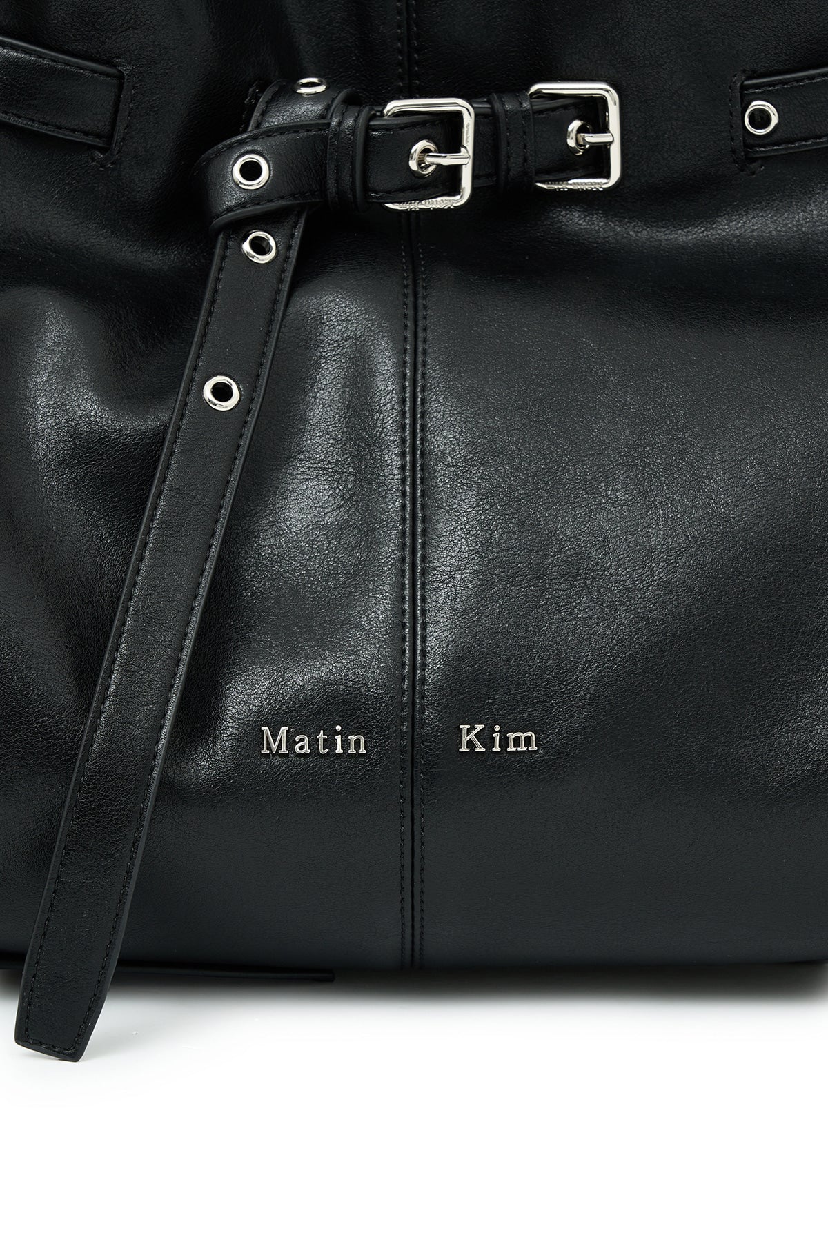 MATIN KIM BELTED VOLUNN MID BUCKET BAG IN BLACK