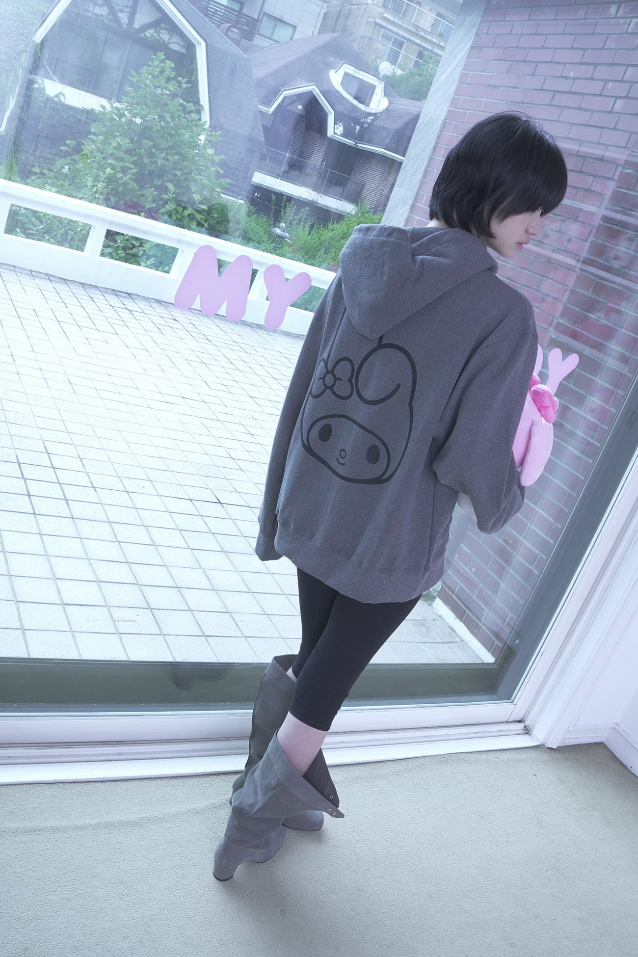 My Melody 2Way Hood Zip Up _ Charcoal