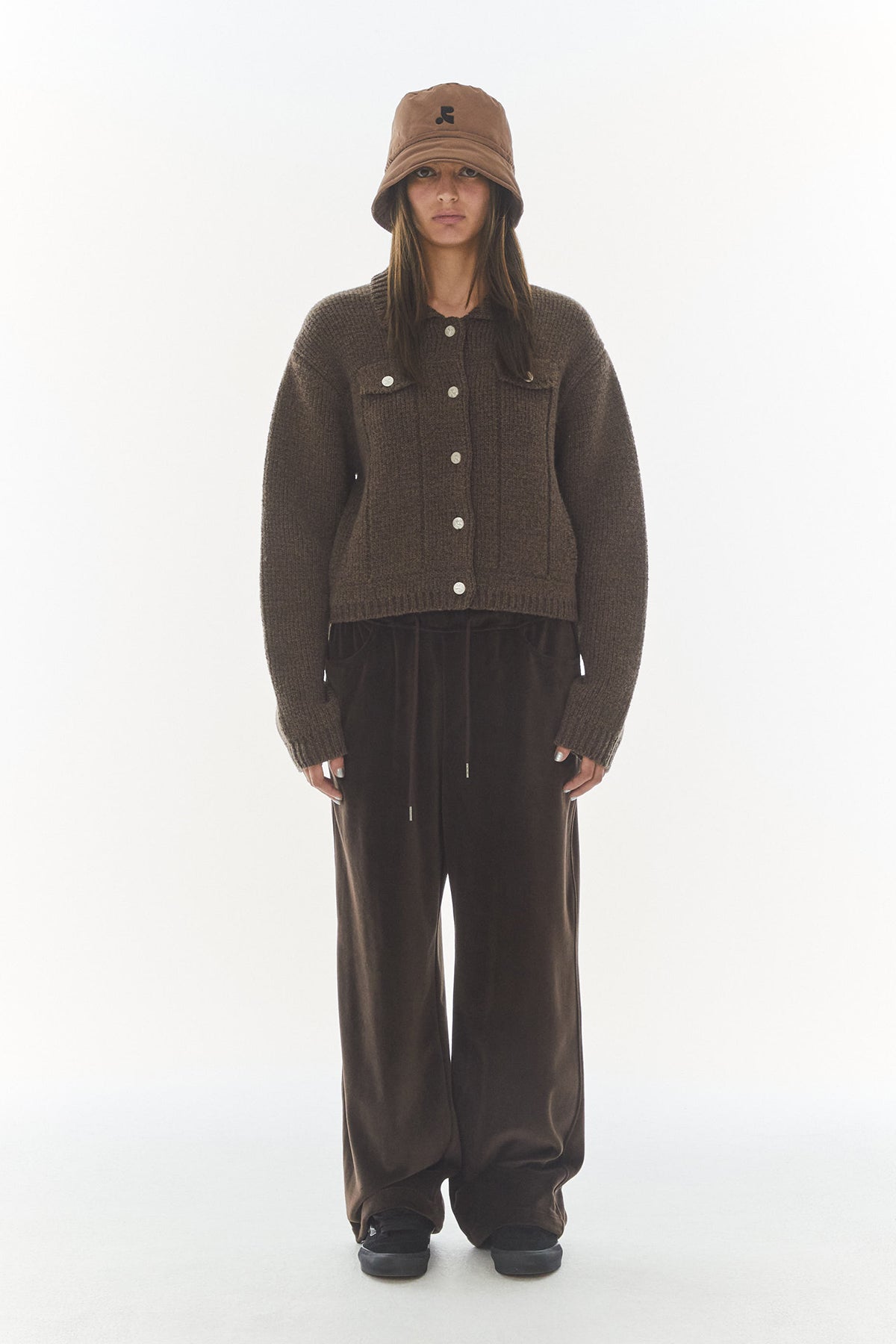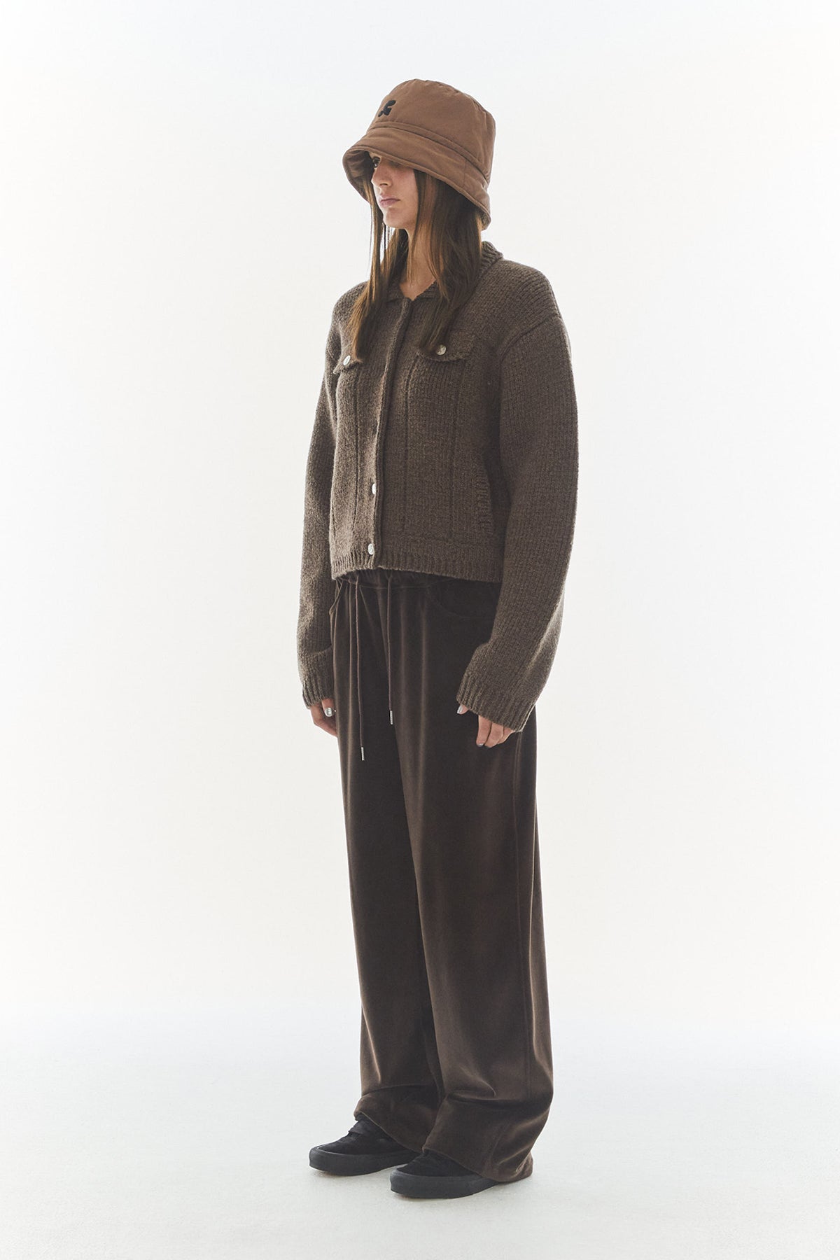 Add KNIT TRUCKER JACKET - BROWN to the cart