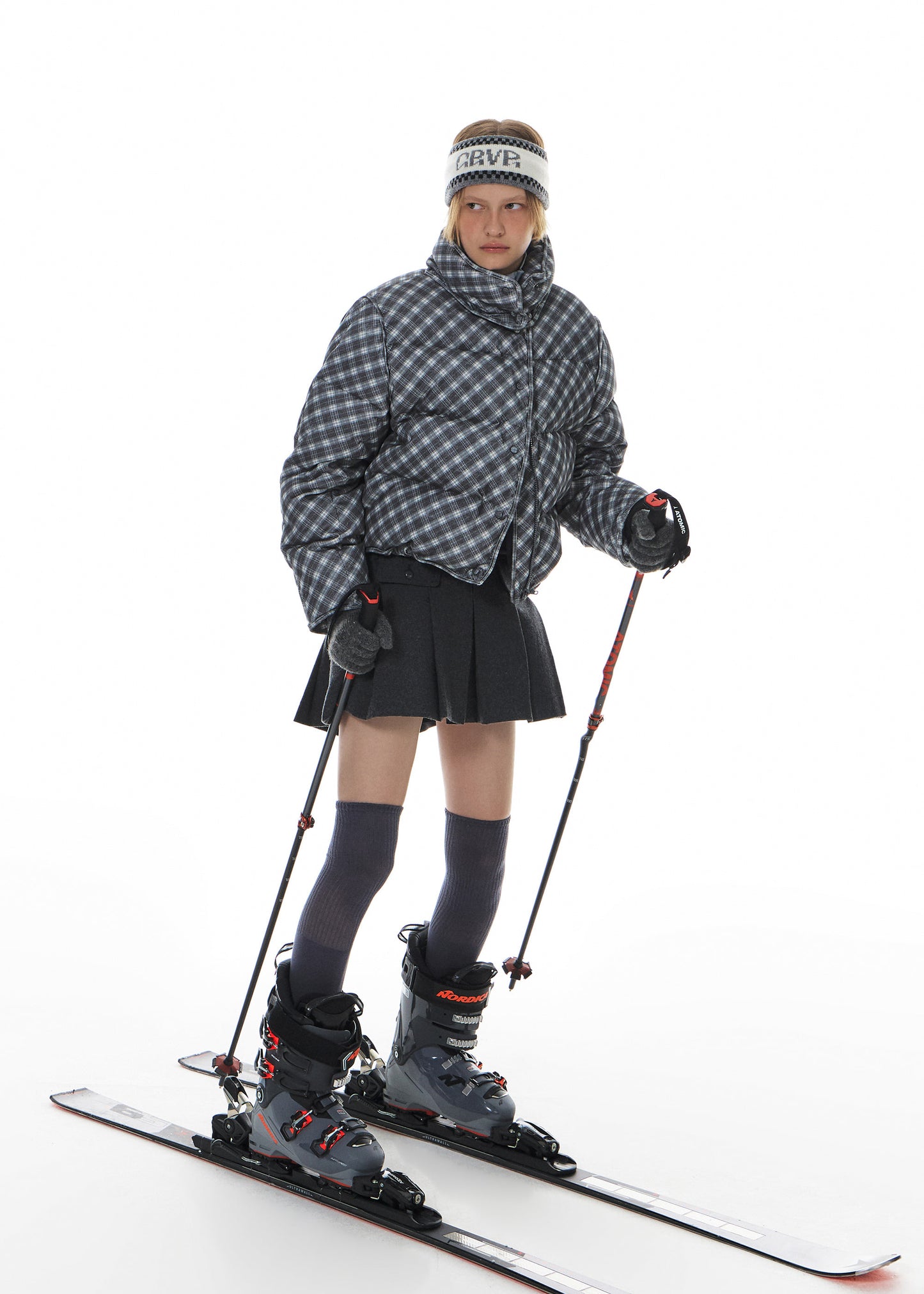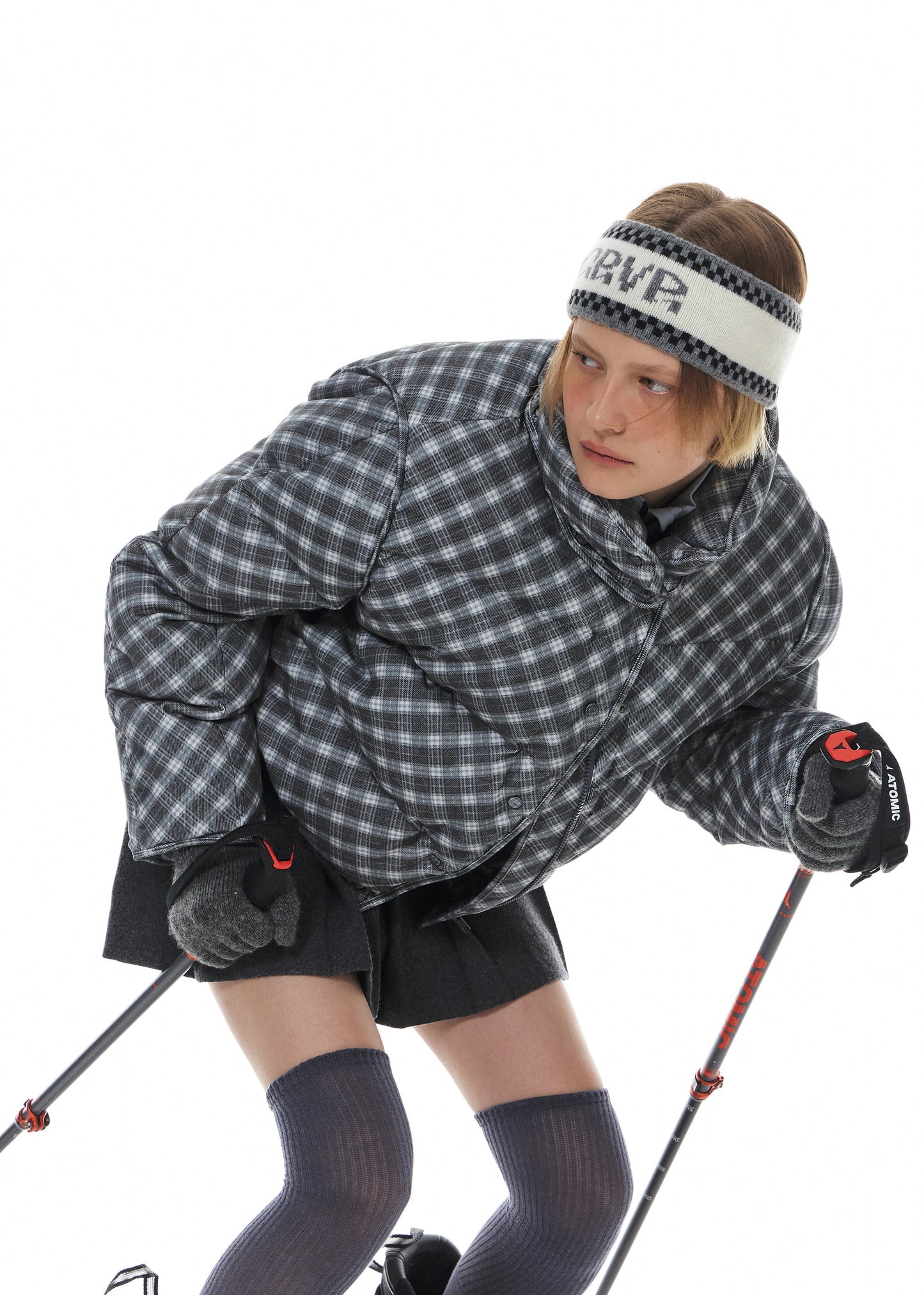 GROVE GARNI CHECK CORDUROY DOWN JACKET GREY