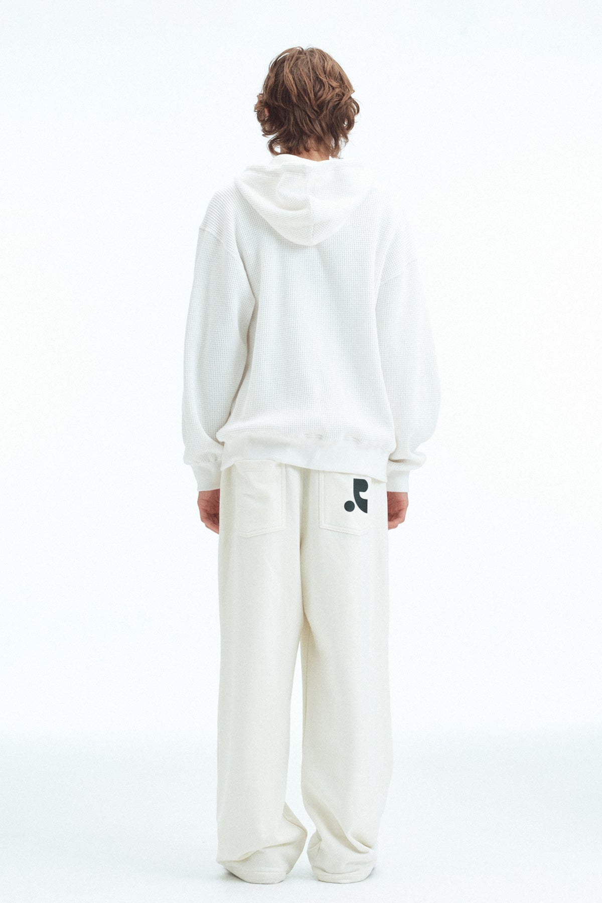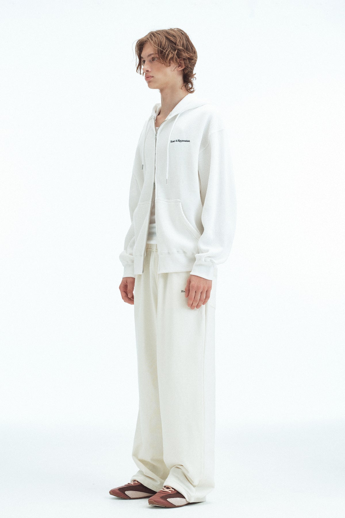 STITCH WAFFLE HOOD ZIP-UP - WHITE