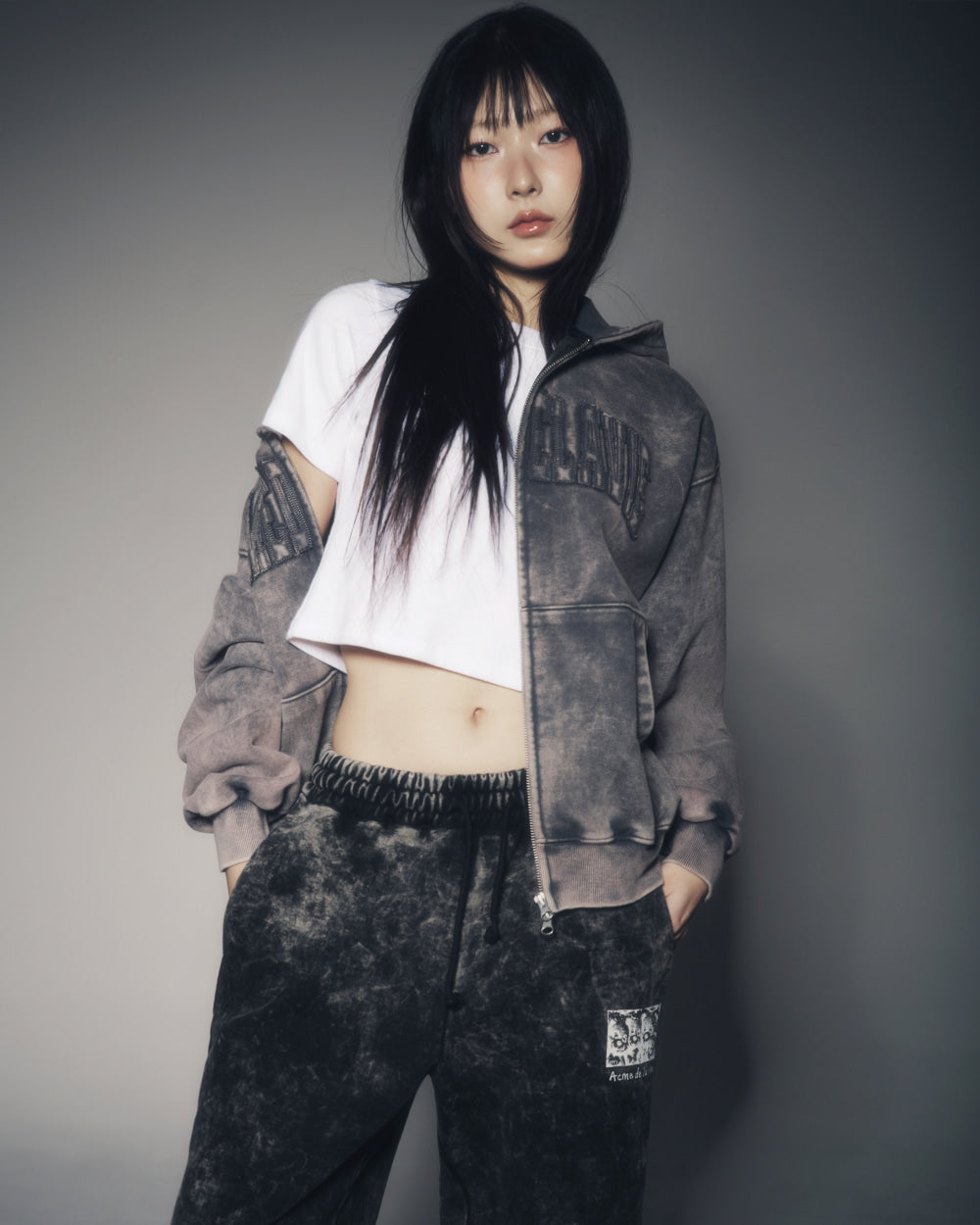 Add ADLV BASIC LOGO WAFFLE WASHED HOODIE ZIP UP MELANGE to the cart