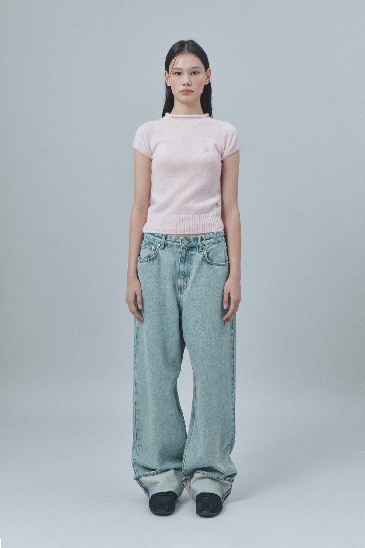 Add RAGLAN HALF SLEEVE KNIT TOP - SKY BLUE to the cart