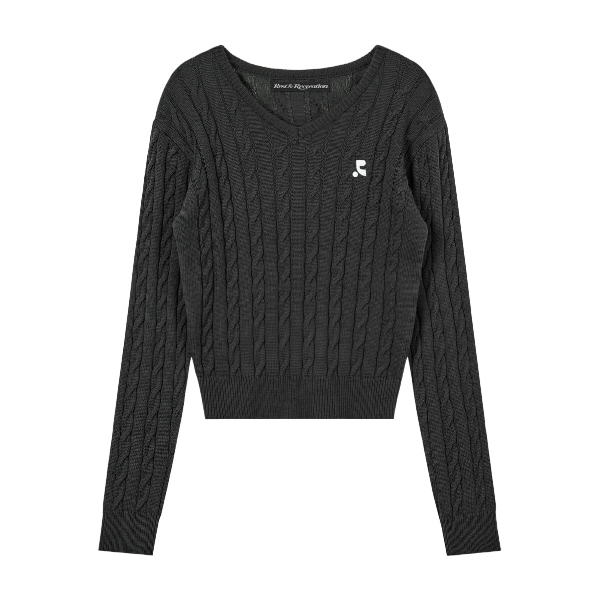Add CABLE V-NECK KNIT TOP - CHARCOAL to the cart