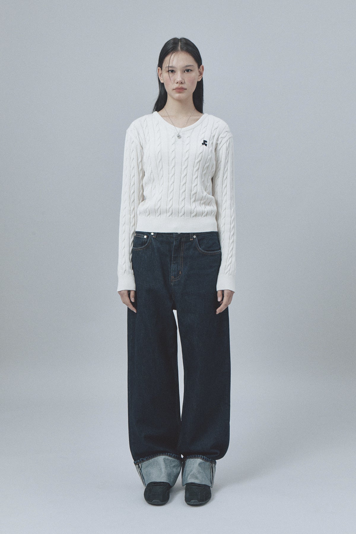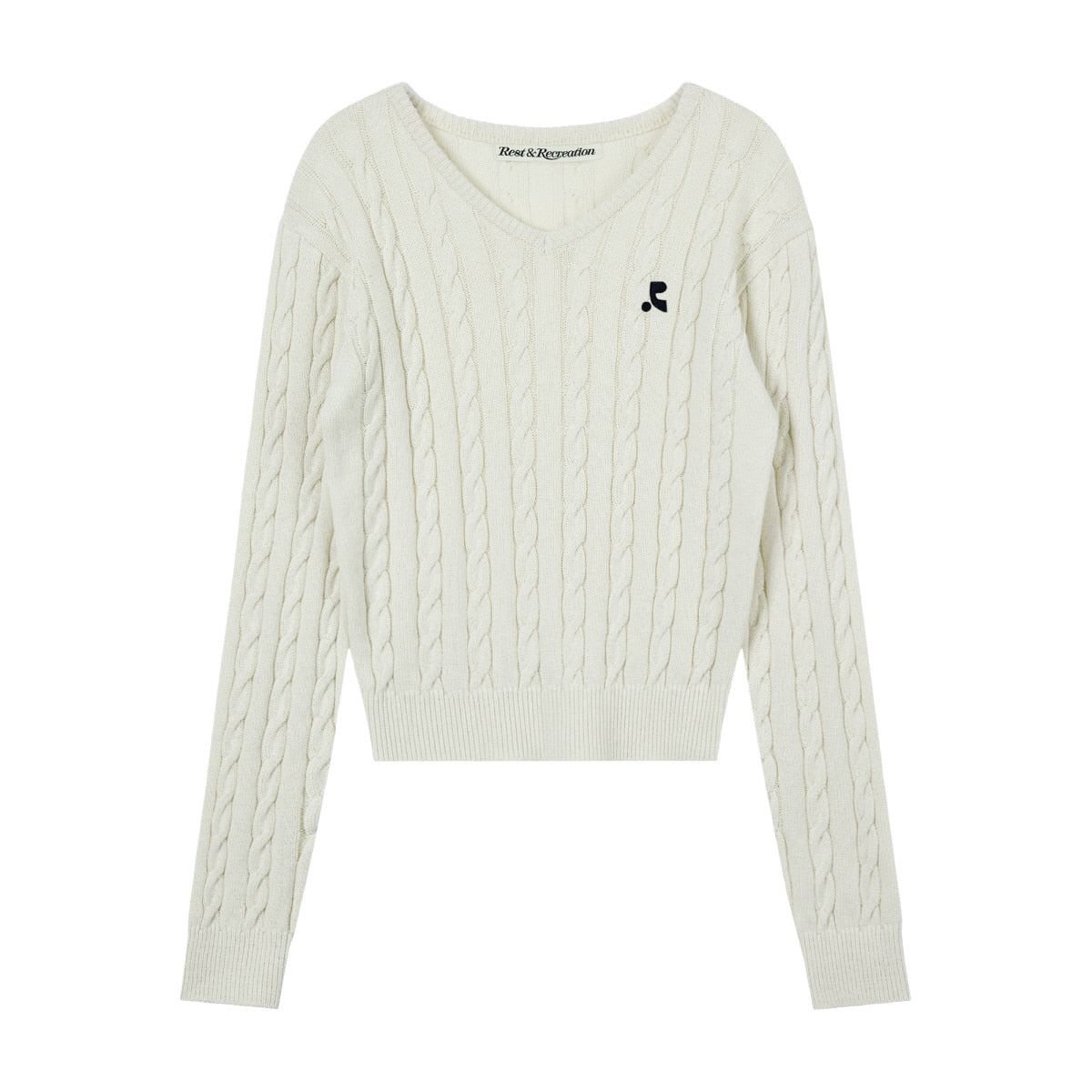 Add CABLE V-NECK KNIT TOP - IVORY to the cart