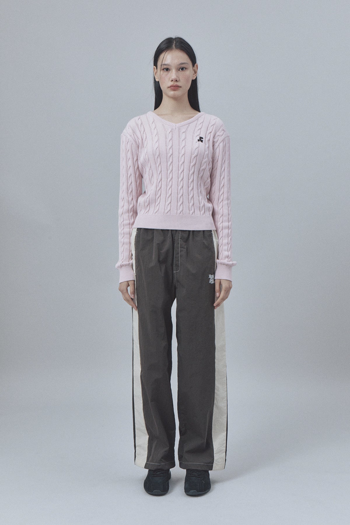 Add CABLE V-NECK KNIT TOP - PINK to the cart