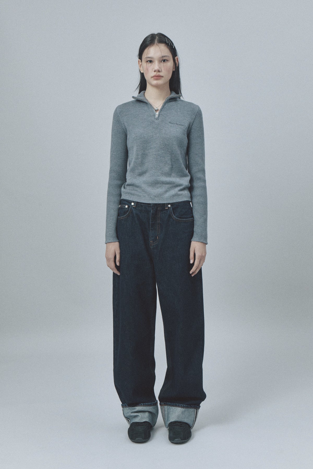 Add SLIM FIT HALF ZIP-UP KNIT - GREY to the cart