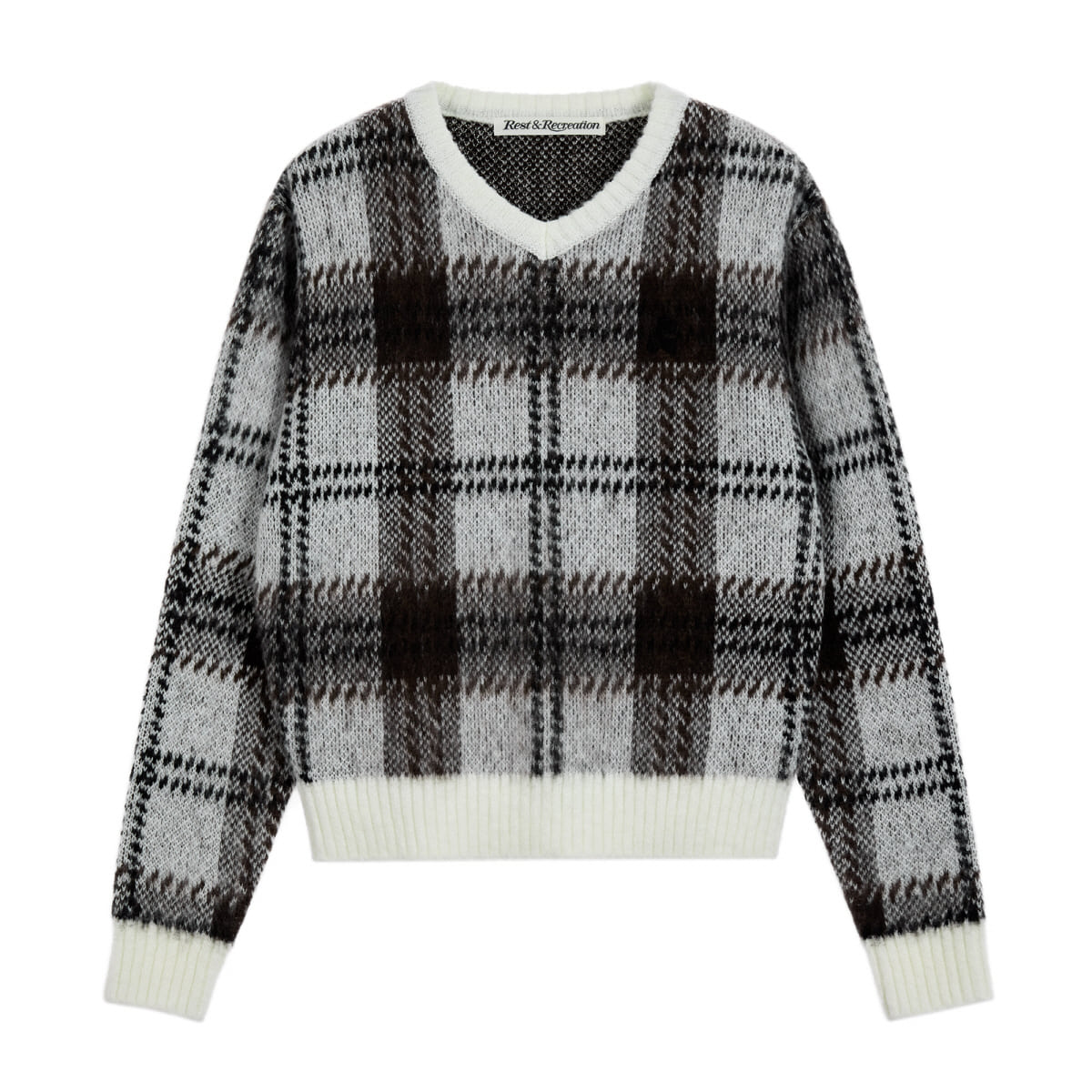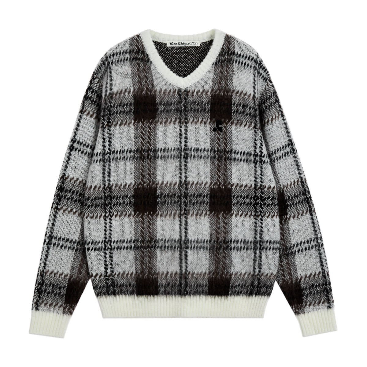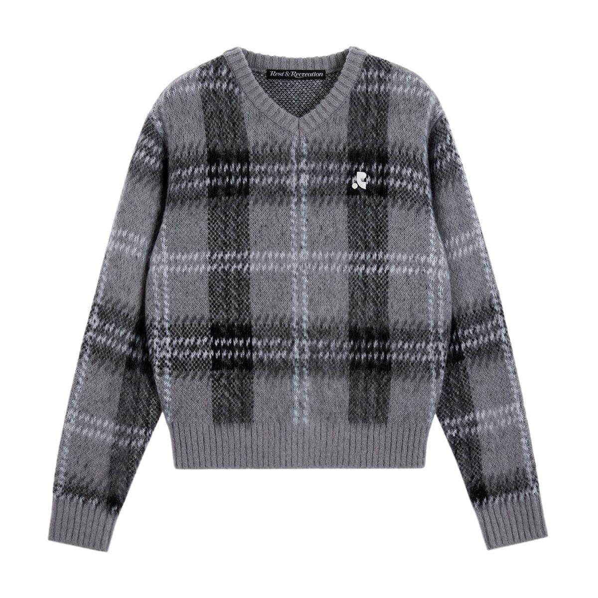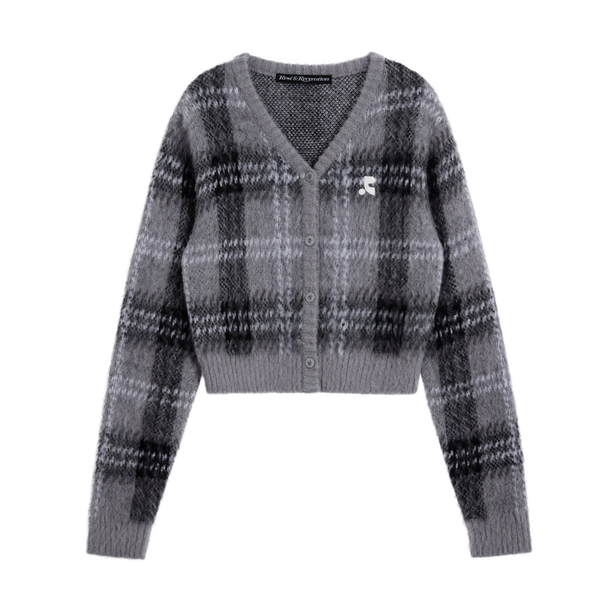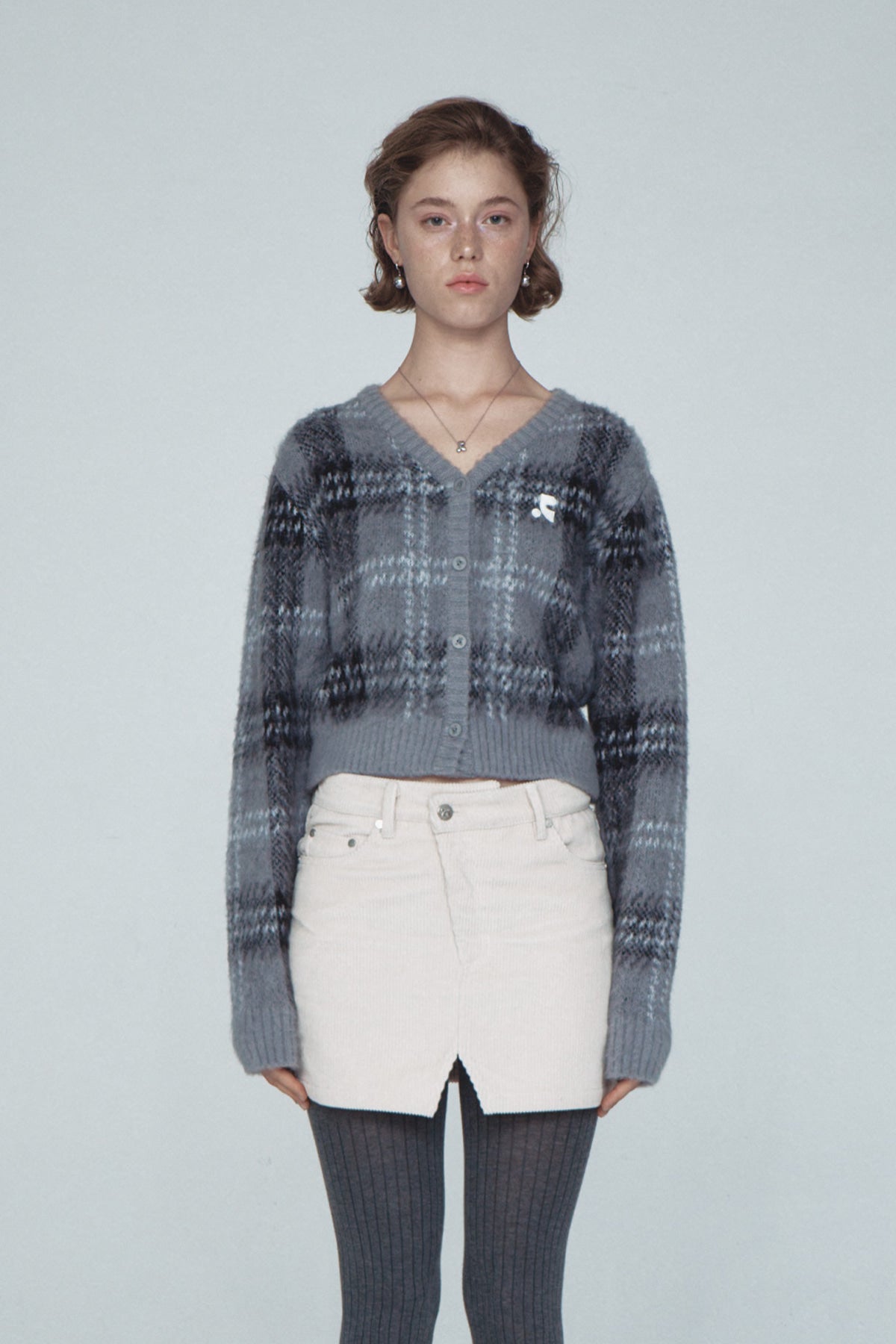 Add CHECK PATTERN HAIRY KNIT CARDIGAN - GREY to the cart