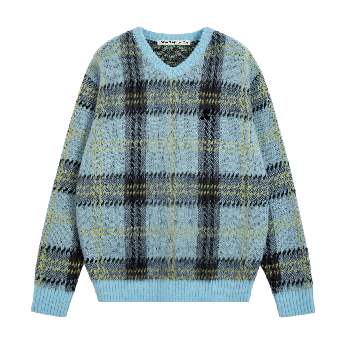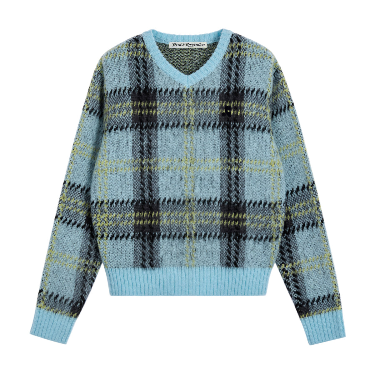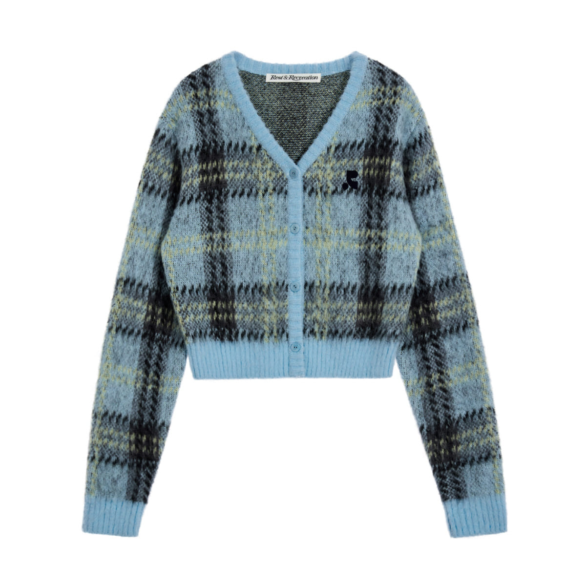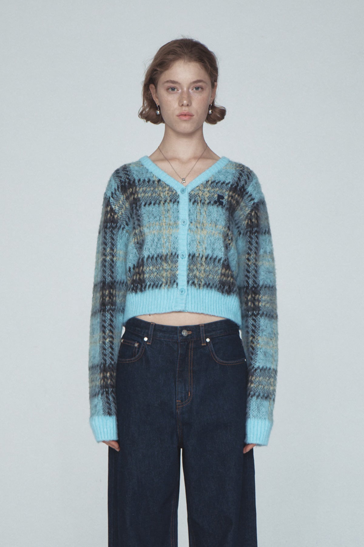 Add CHECK PATTERN HAIRY KNIT CARDIGAN - SKY BLUE to the cart