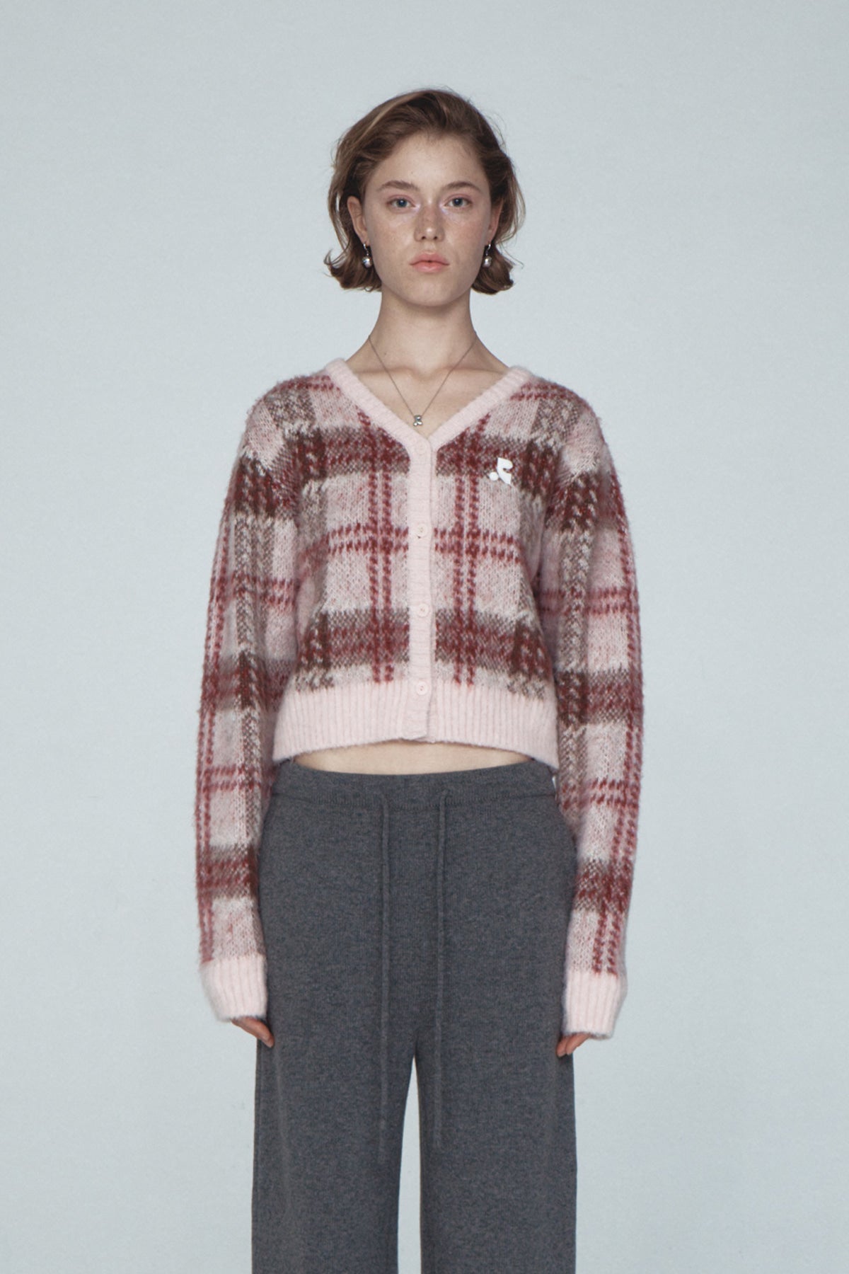 Add CHECK PATTERN HAIRY KNIT CARDIGAN - PINK to the cart