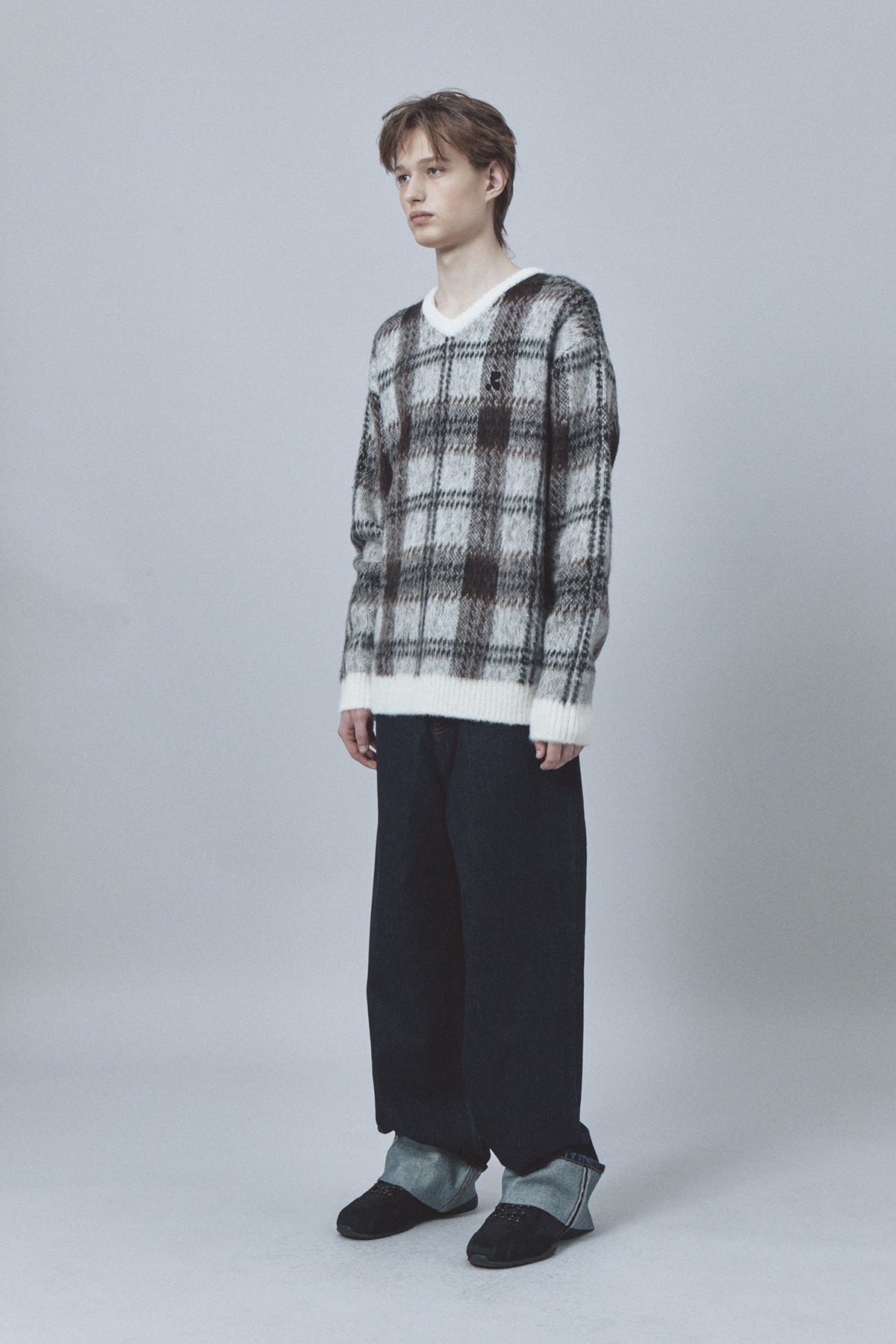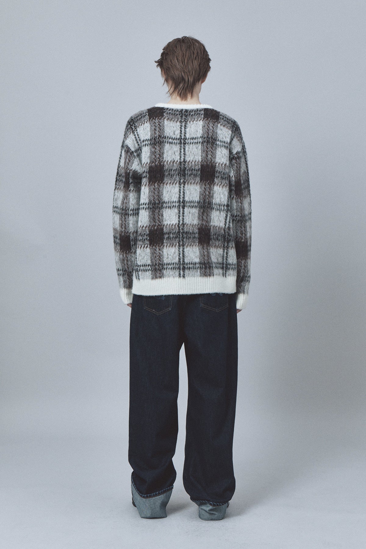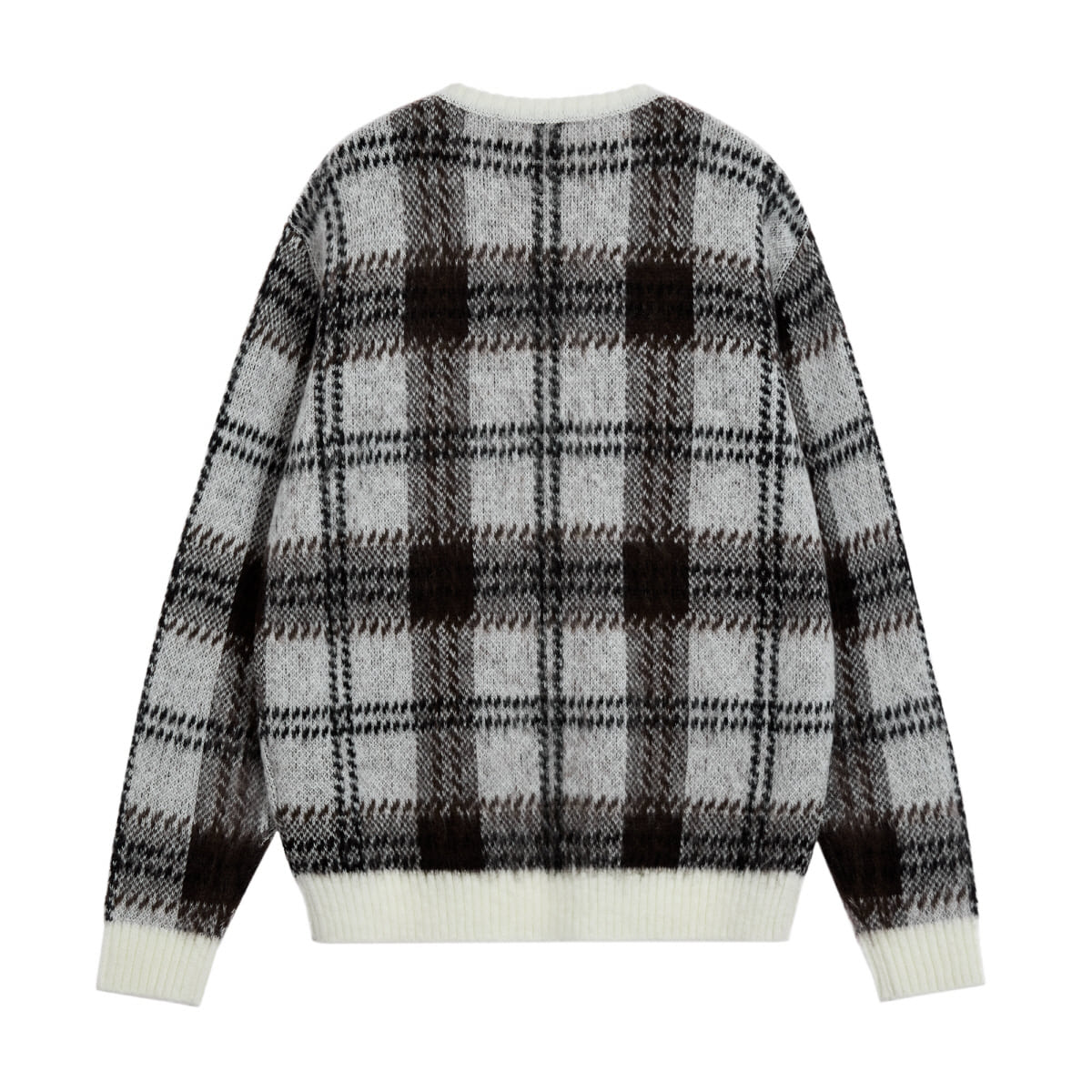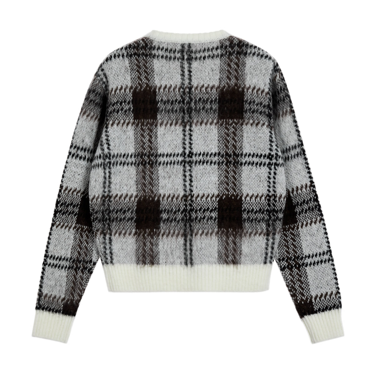 CHECK PATTERN HAIRY SWEATER - IVORY