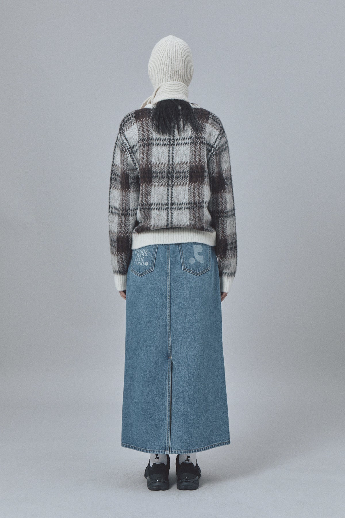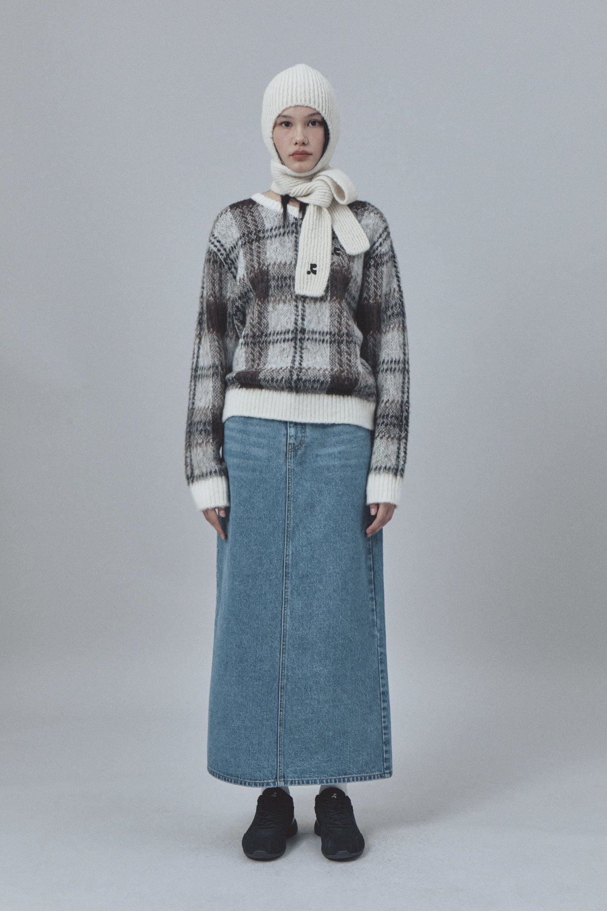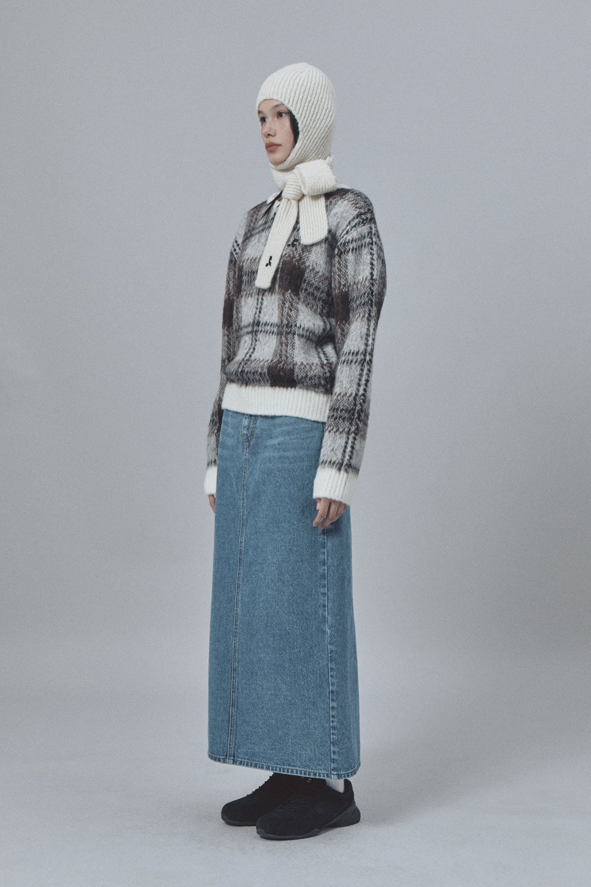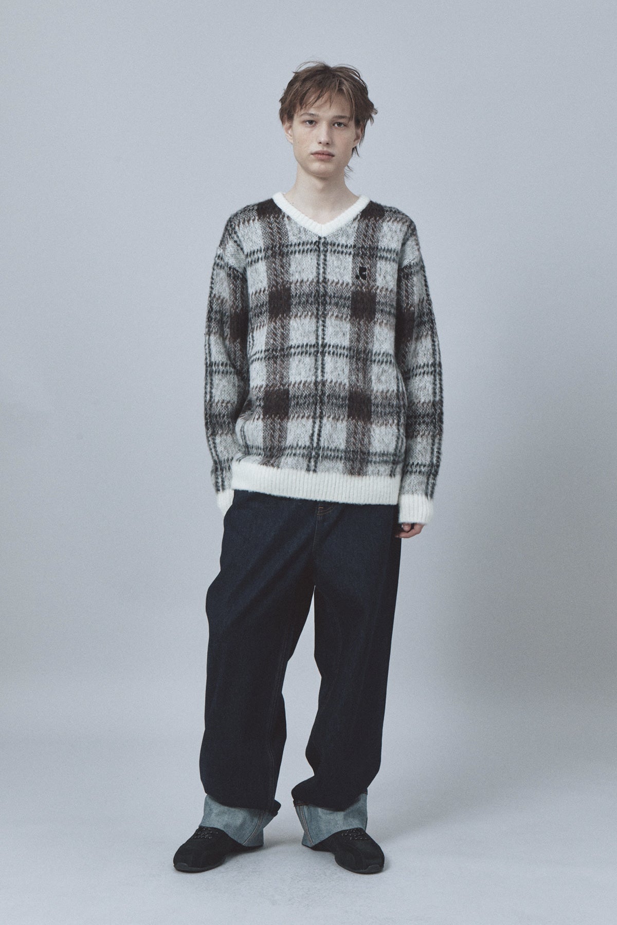 CHECK PATTERN HAIRY SWEATER - IVORY