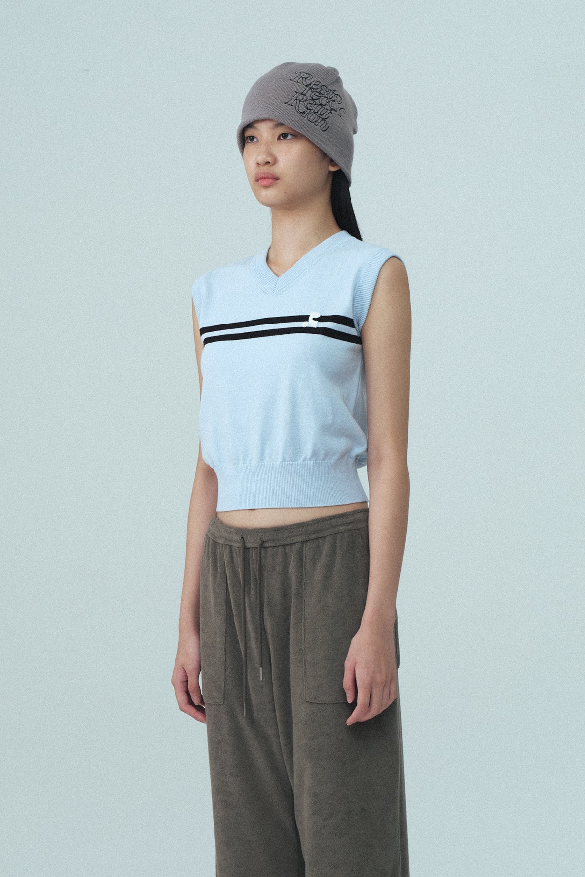 DOUBLE LINE KNIT VEST - SKY BLUE