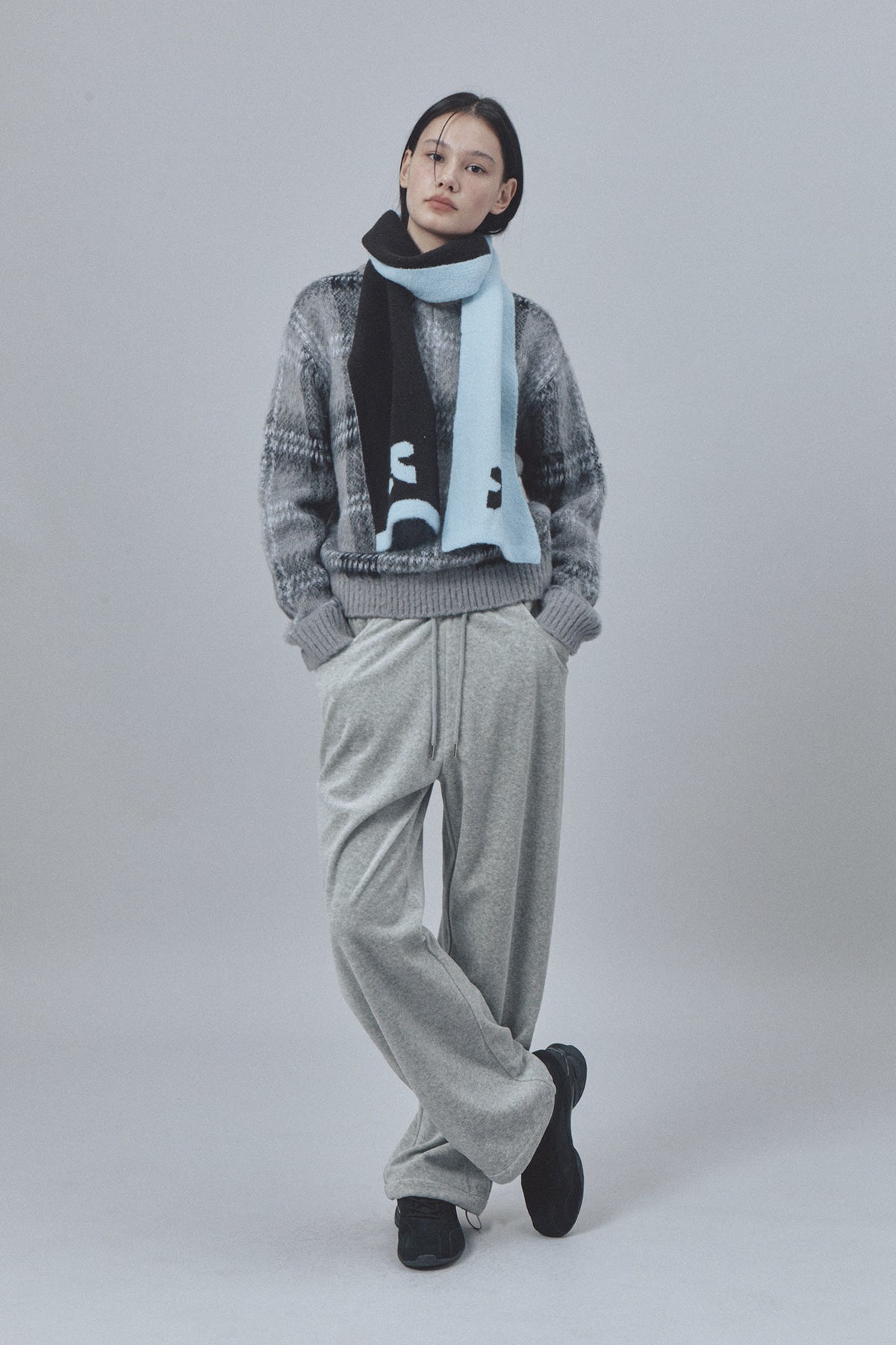 LOGO KNIT MUFFLER - BLACK