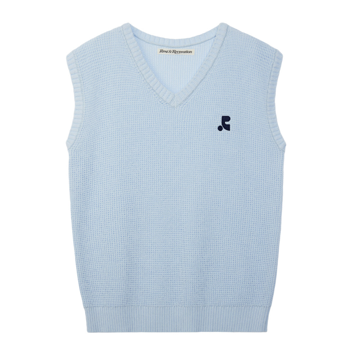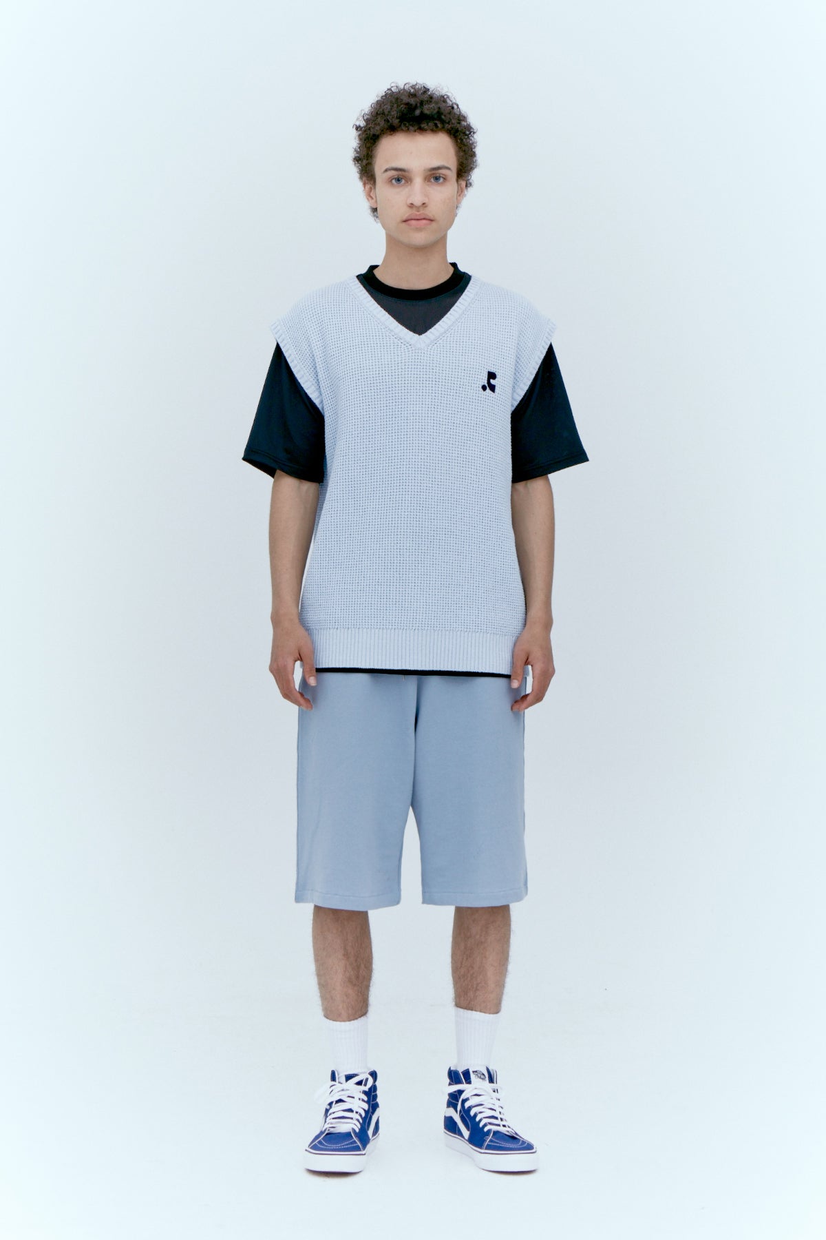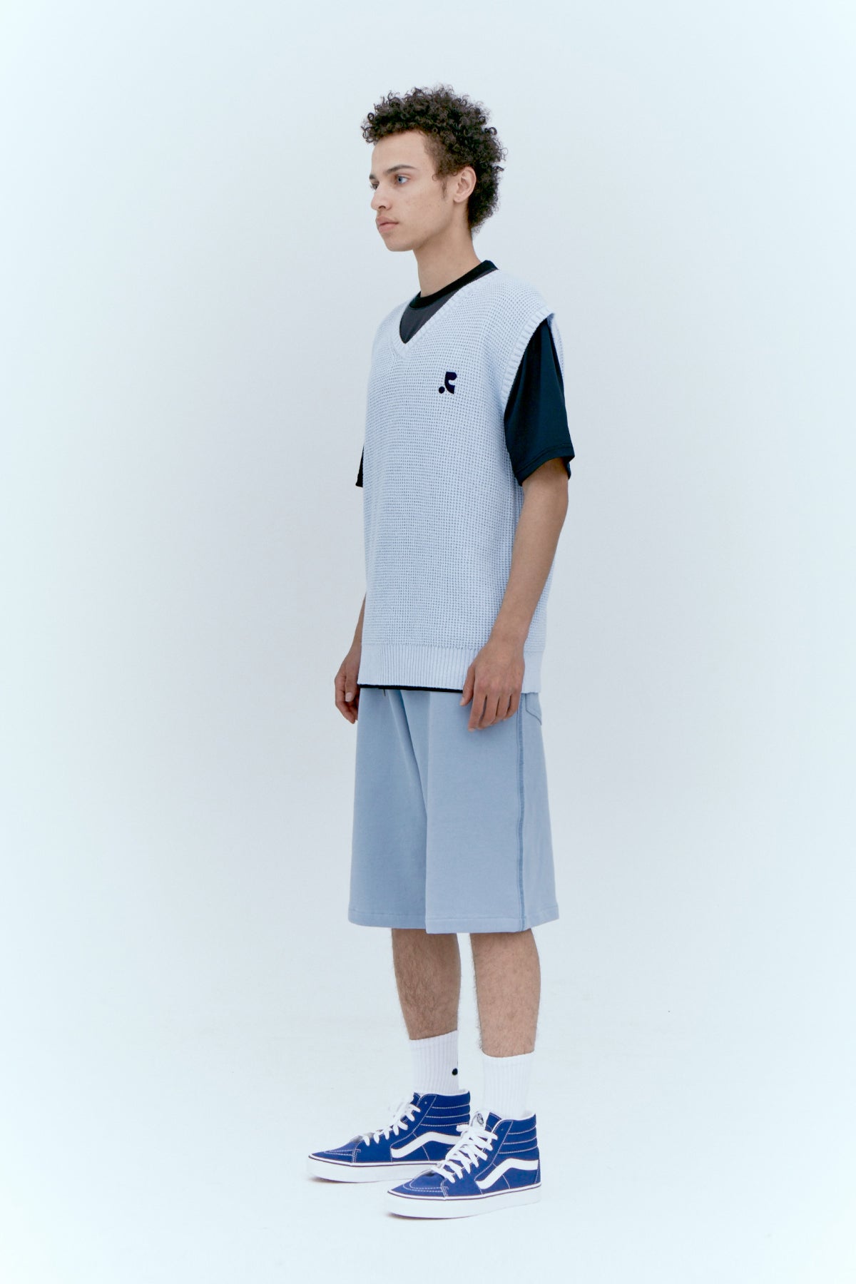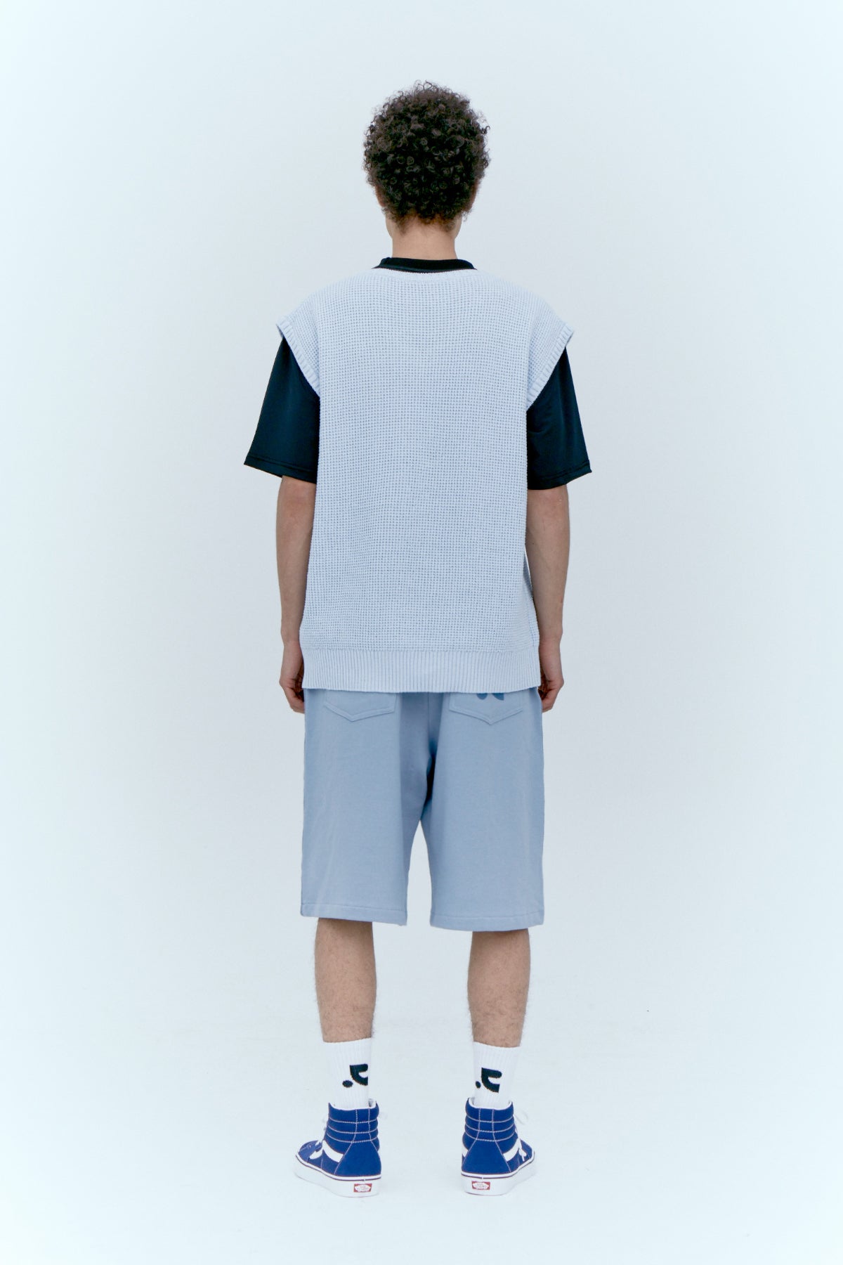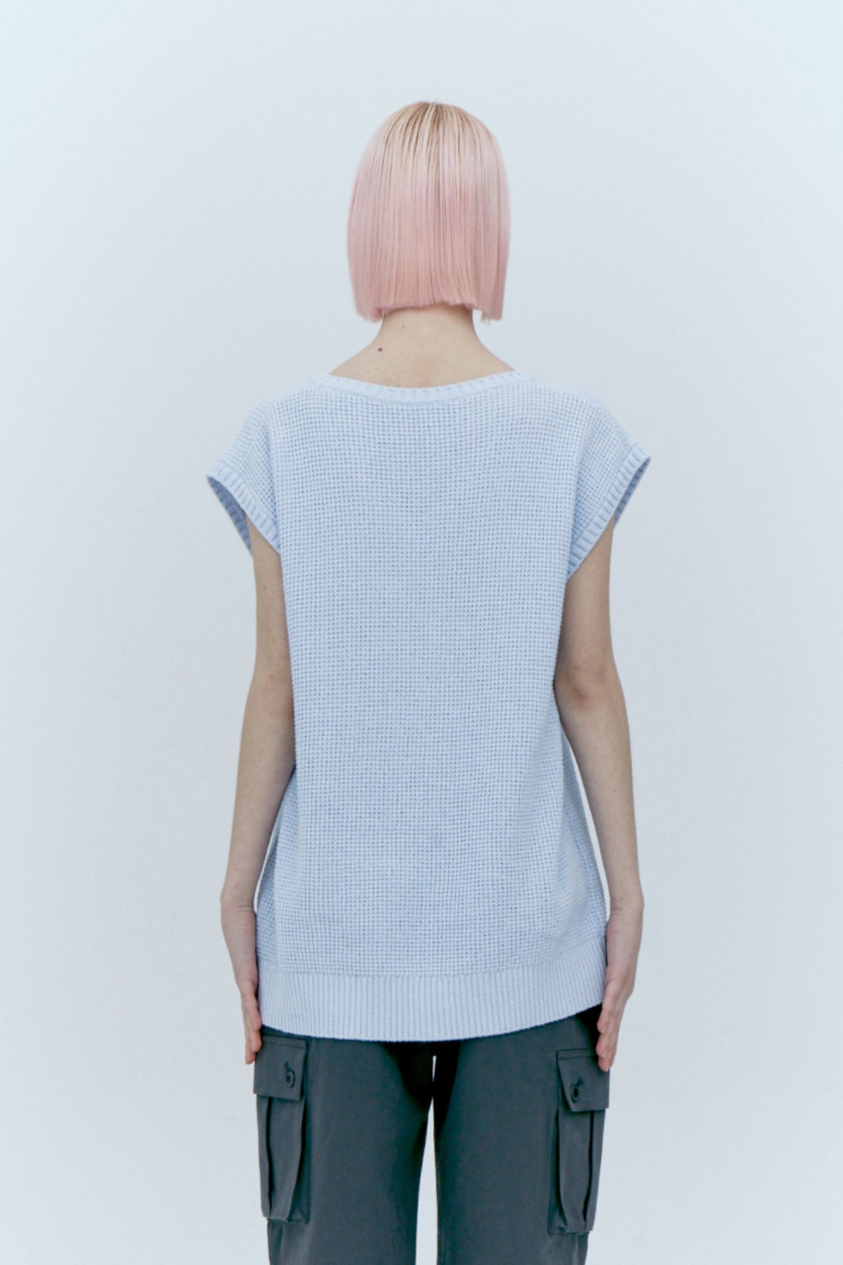 OVERSIZED V-NECK KNIT VEST - SKY BLUE