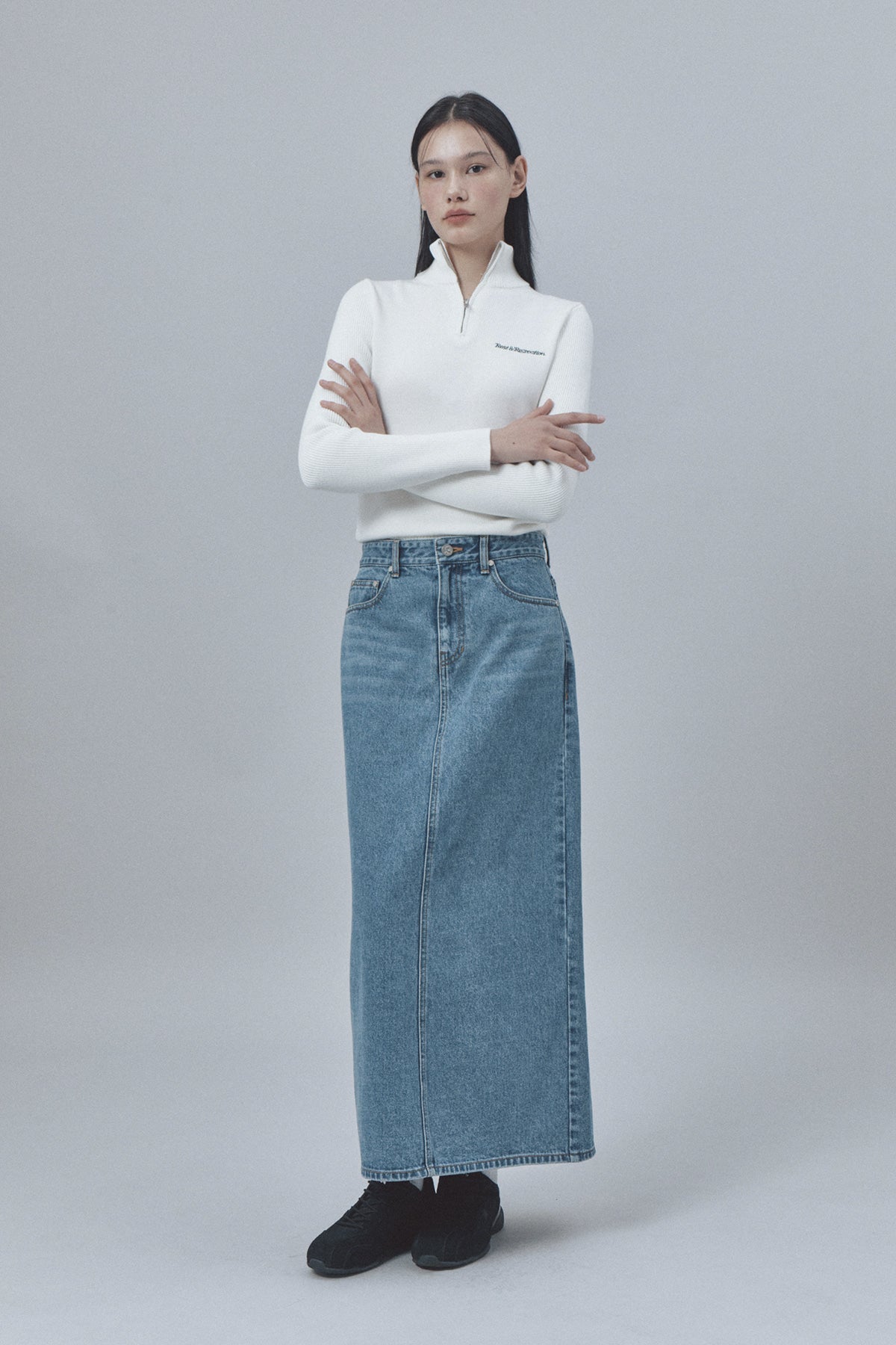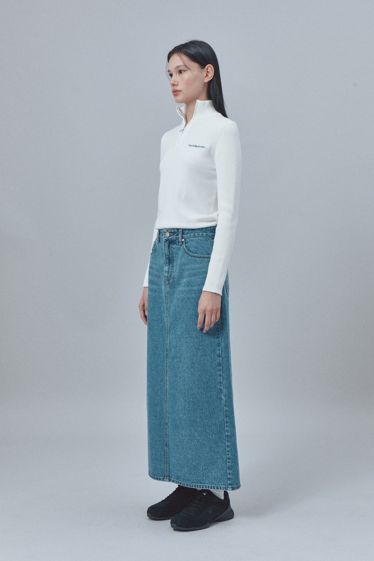 SLIM FIT HALF ZIP-UP KNIT - IVORY