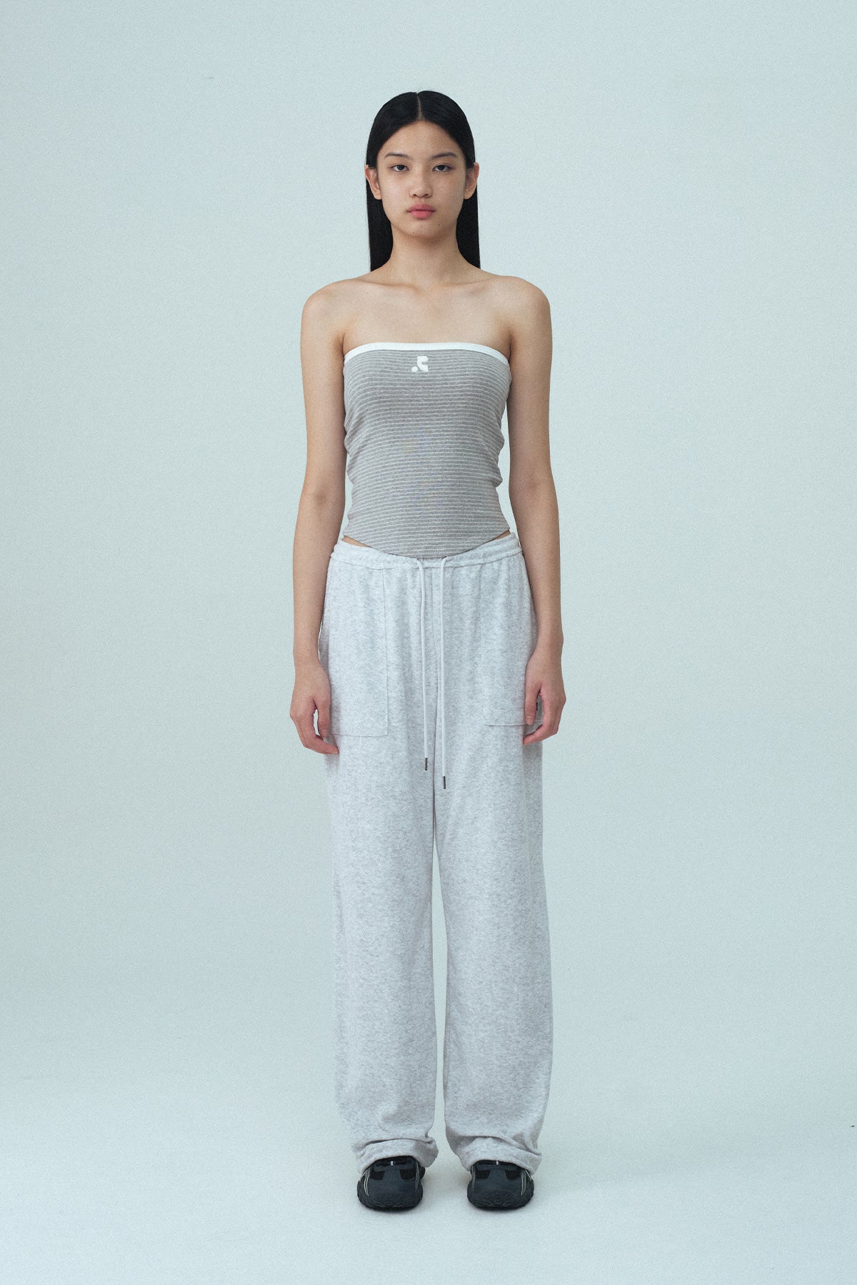 STRIPE TUBE TOP - LIGHT GREY