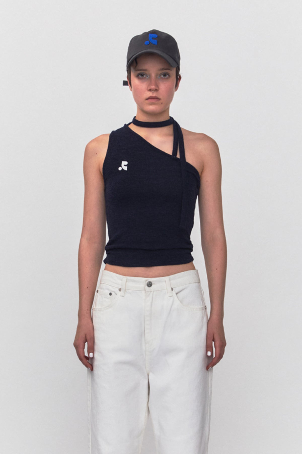 Add RR ONE SHOULDER TIE TOP - NAVY to the cart