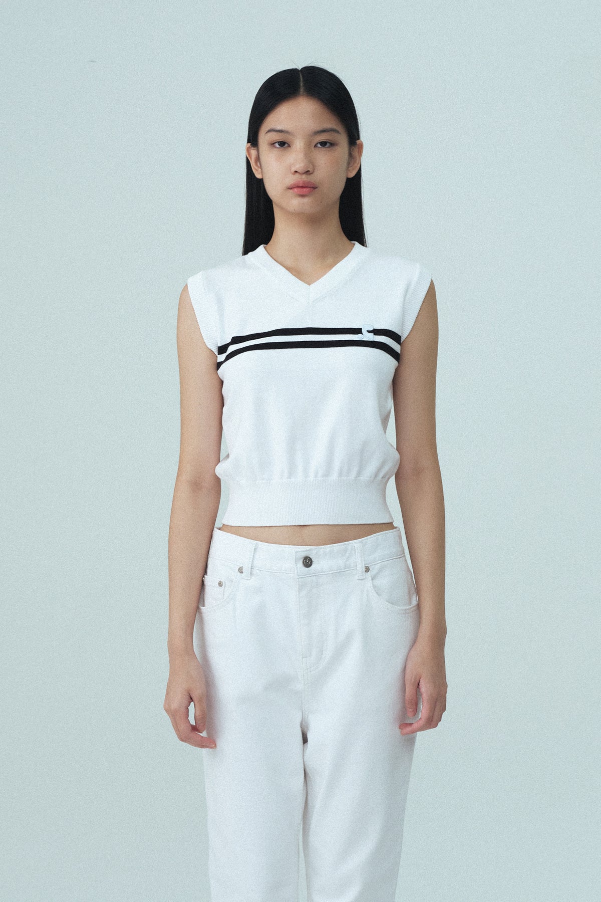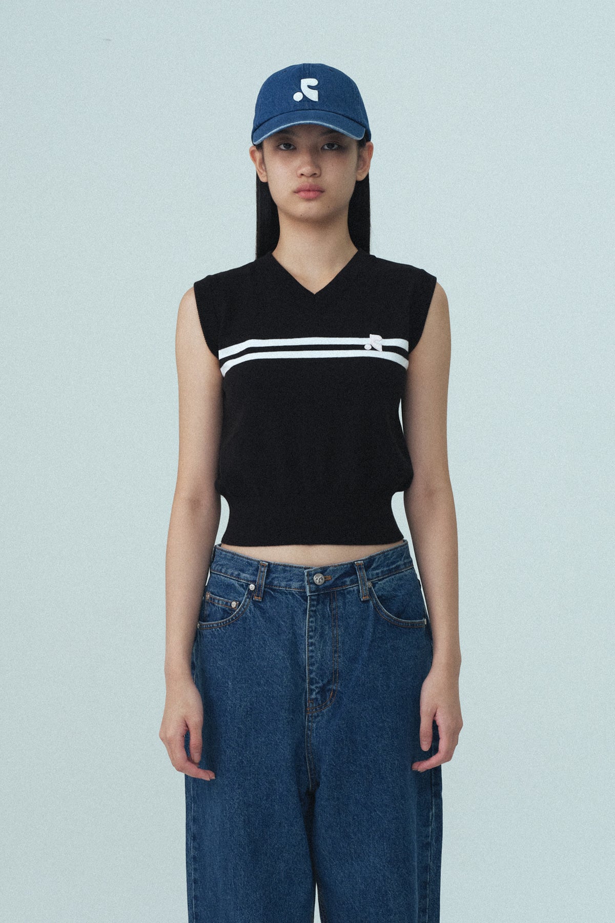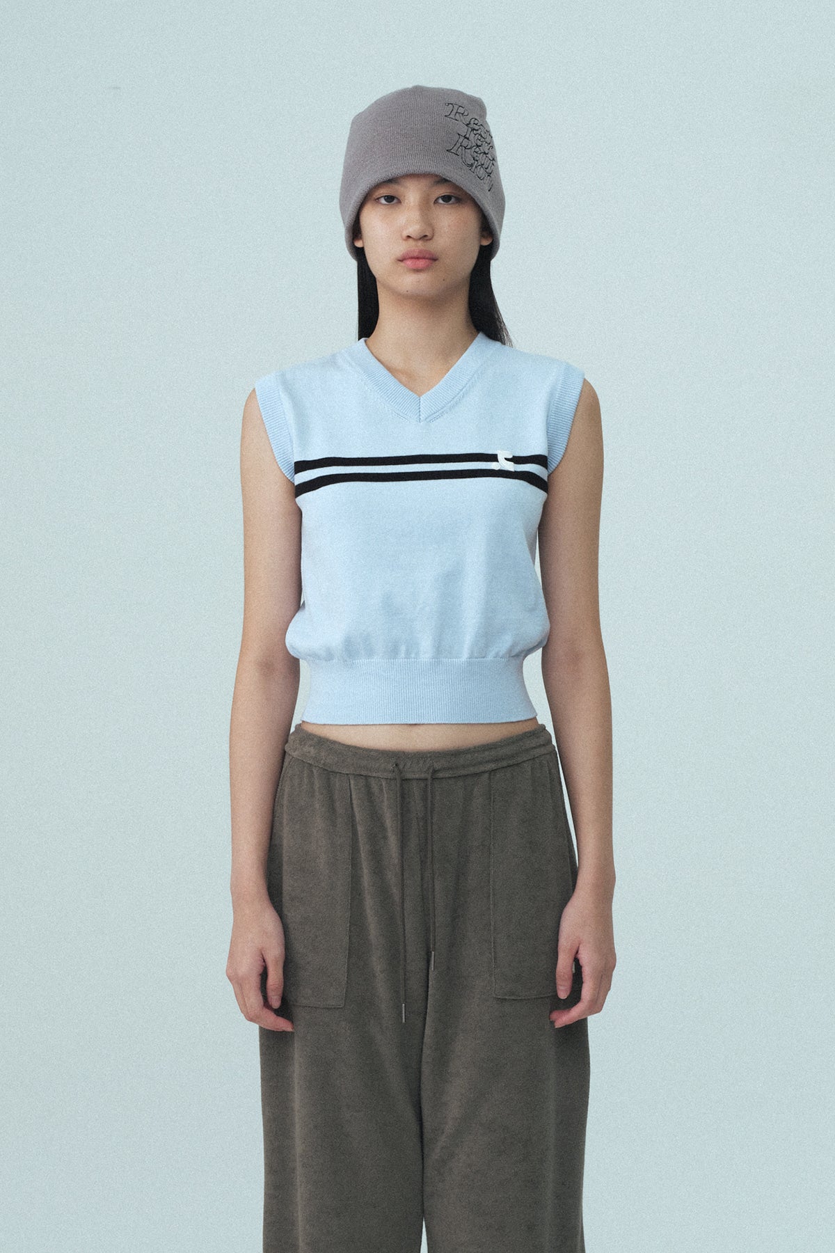 Add DOUBLE LINE KNIT VEST - SKY BLUE to the cart