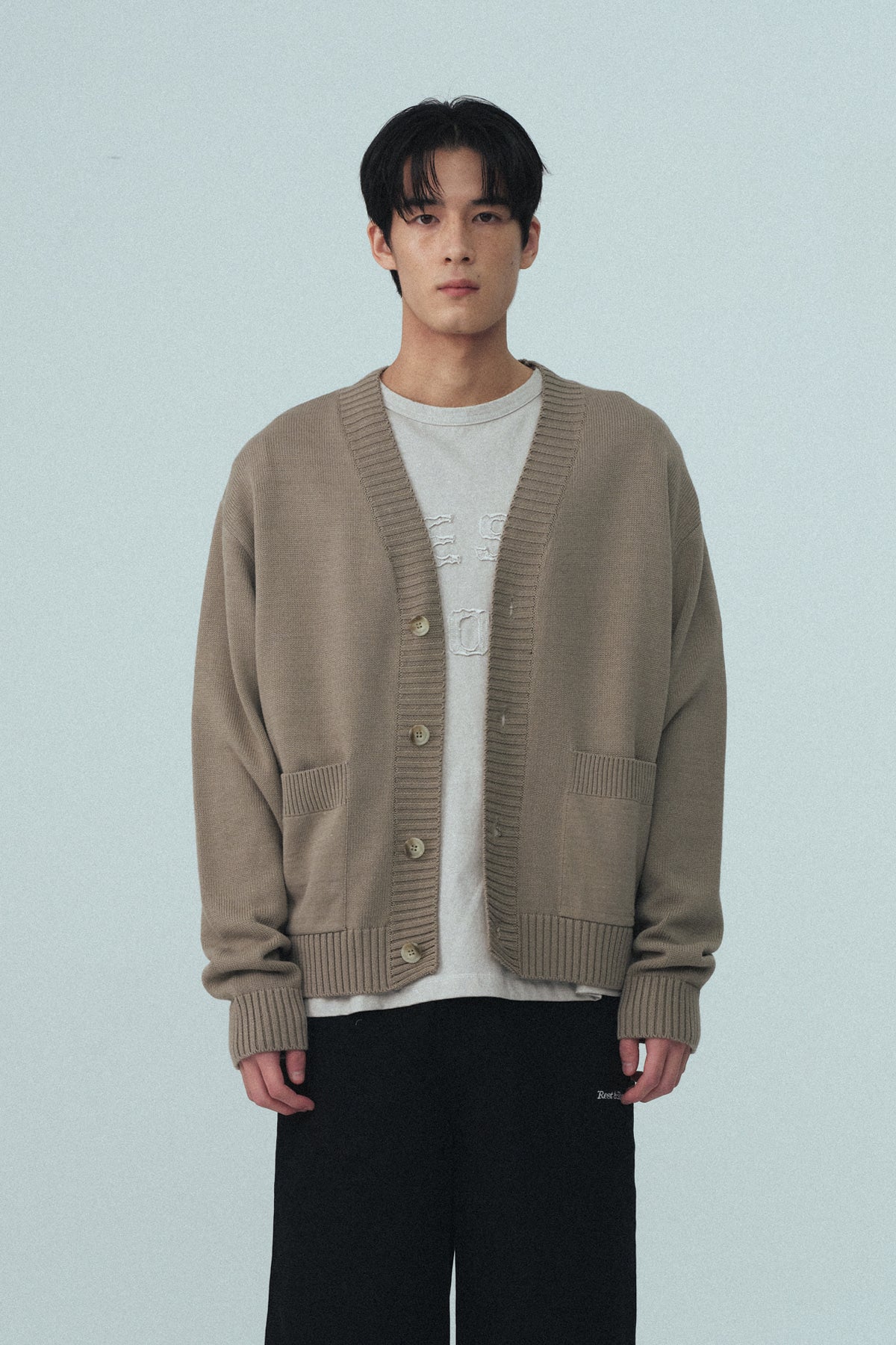 Add V-NECK KNIT CARDIGAN - KHAKI BEIGE to the cart
