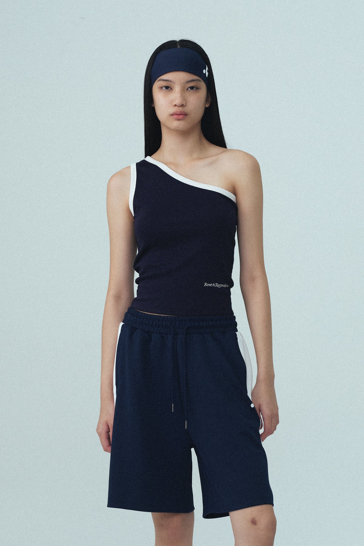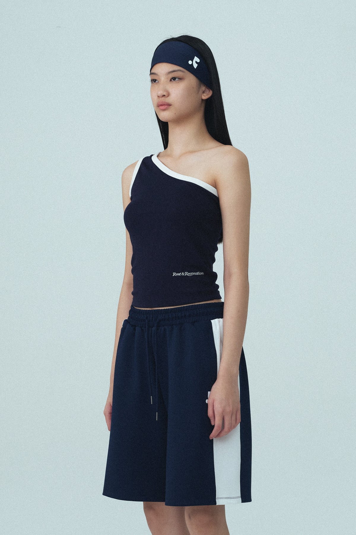Add ONE SHOULDER SLEEVELESS - NAVY to the cart