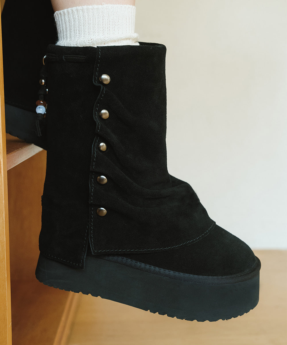 ROCKFISH STUD MAXI FOLDED BOOTS MIDDLE - BLACK