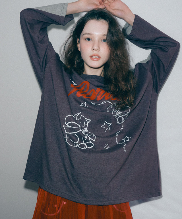 Add RONRON COLORED CRAYON CAT LONG SLEEVE VINTAGE BROWN to the cart