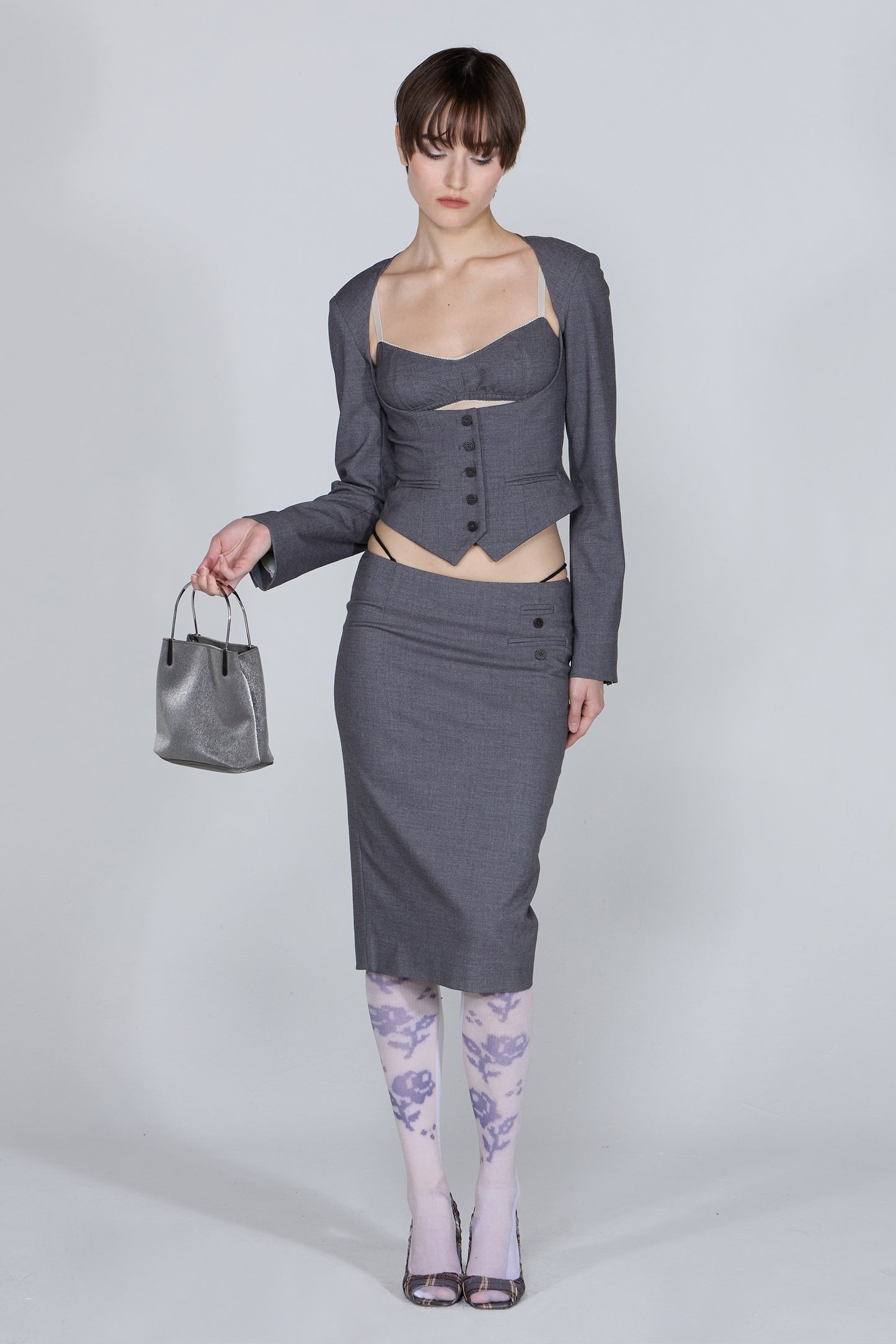 Add RONRON DOUBLE RIBBON SLIM CROP LONG SLEEVE GREY to the cart