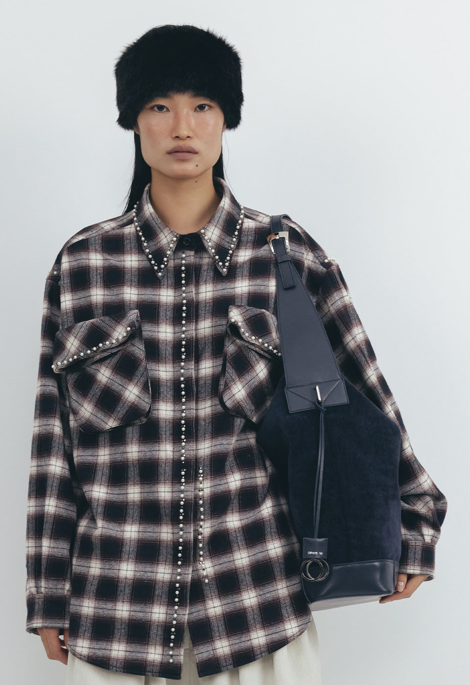 Add ROUND POCKET CHECK SHIRTS [BLACK] to the cart