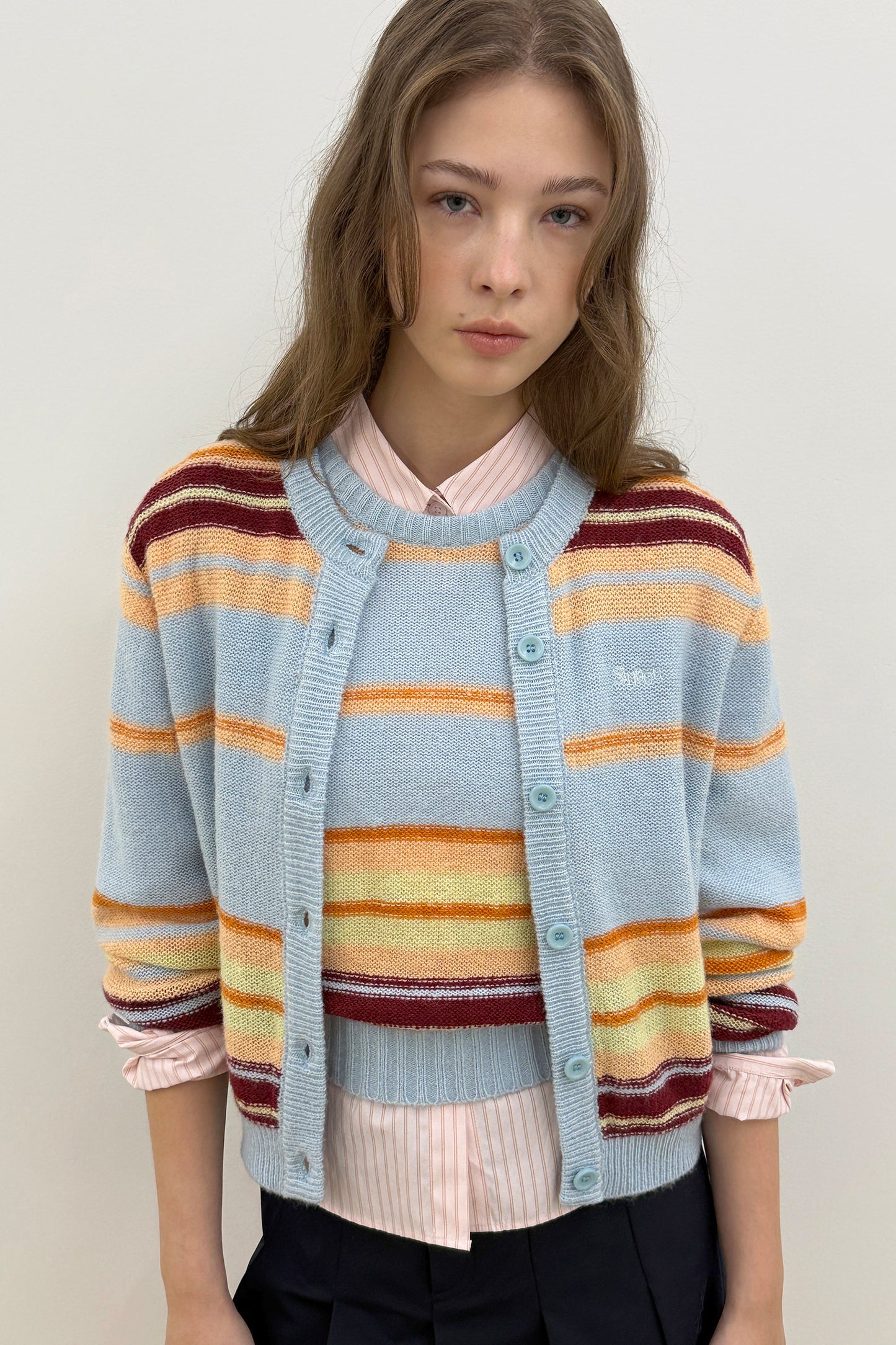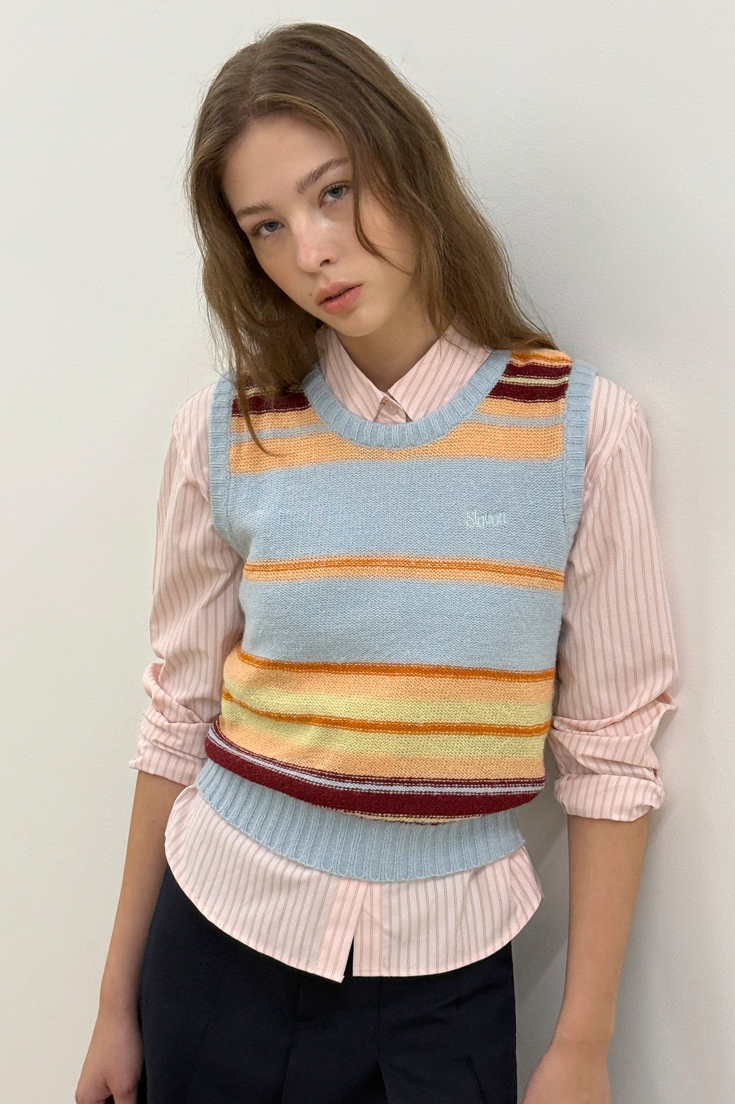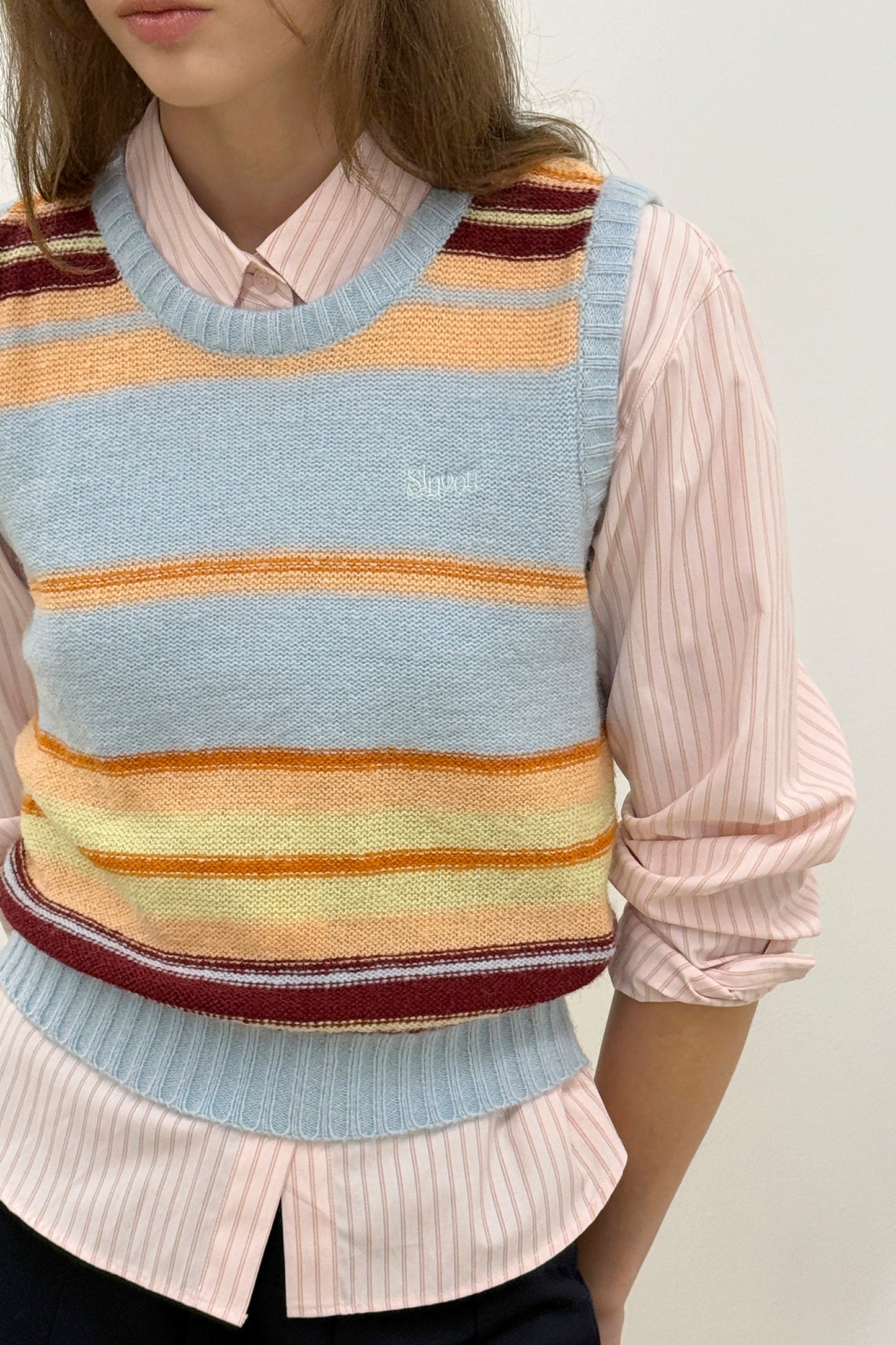 Sinoon Mix Stripe Knit Vest (Blue Mix)