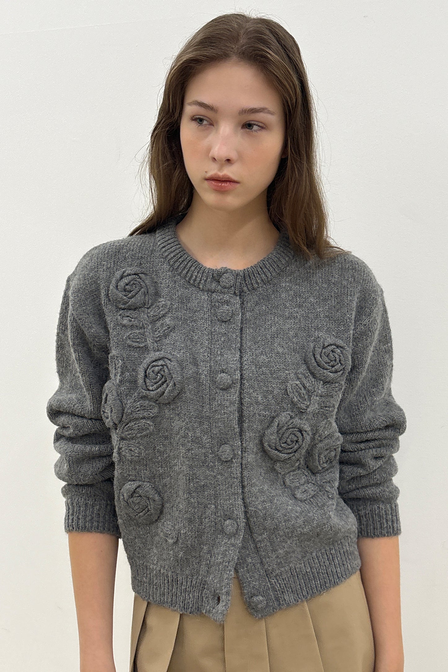 Sinoon Rose Artwork Hairy Cardigan (Melange Grey)