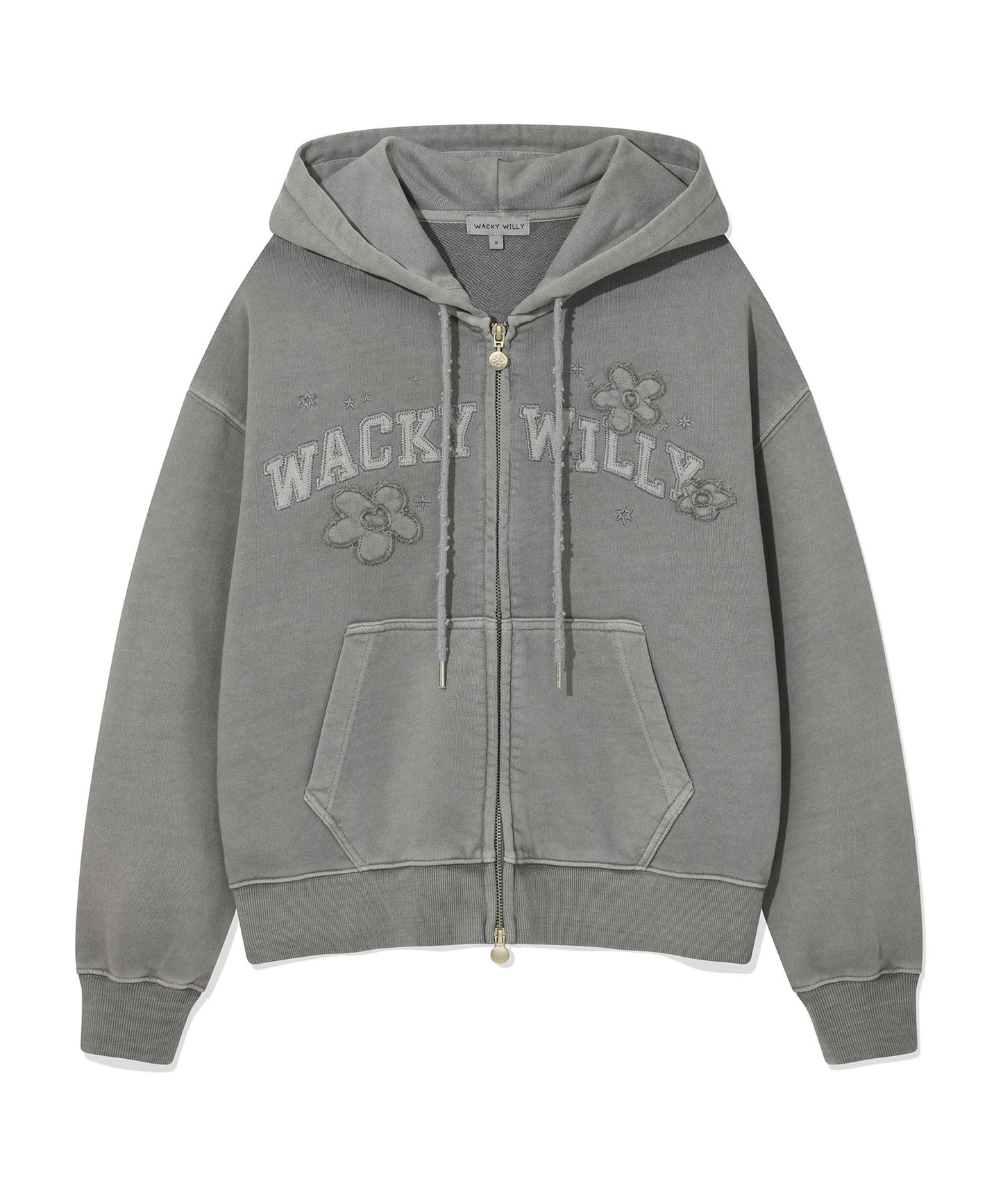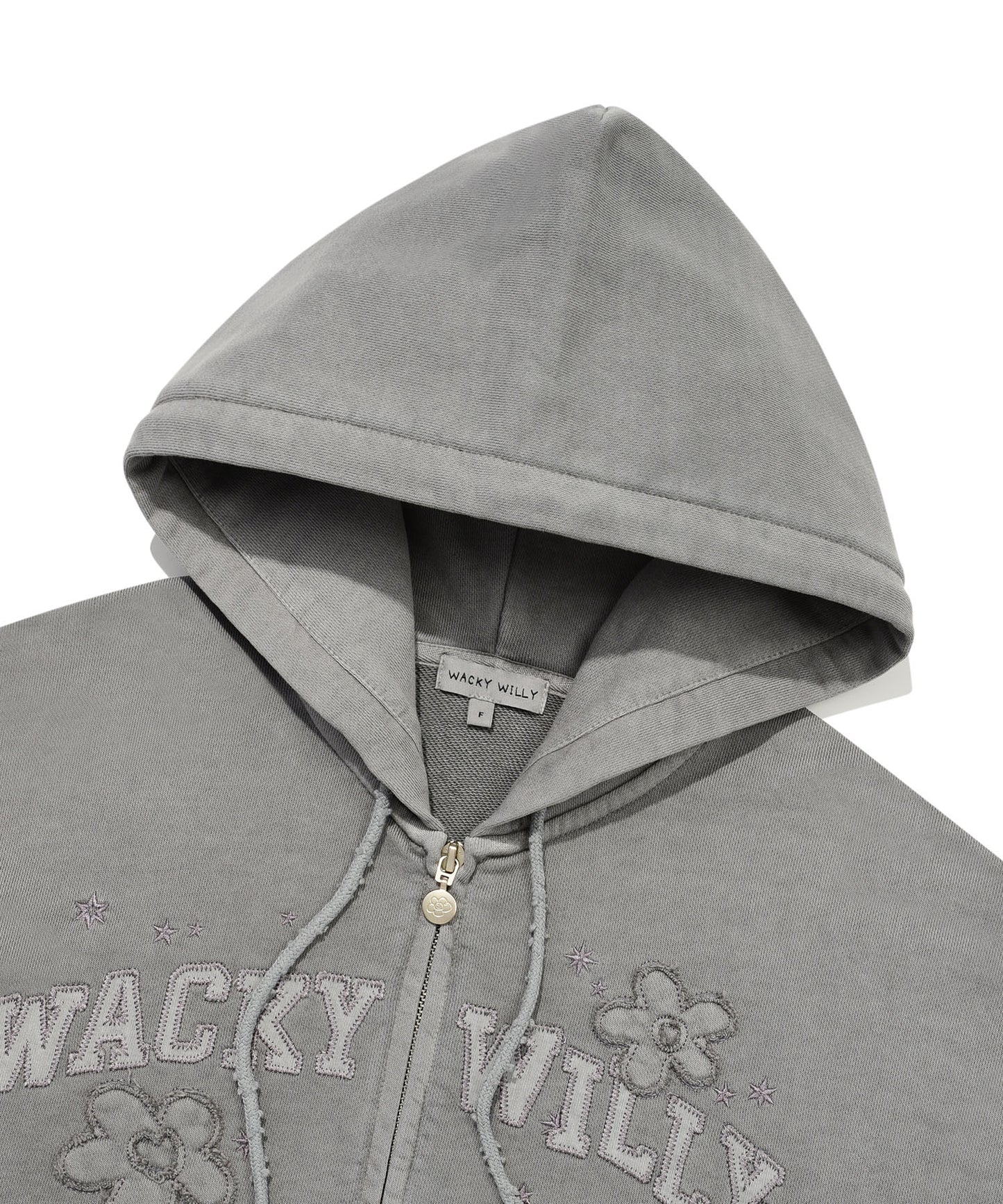 Add Pigment-Washed Appliqué Hooded Zip-Up Light Grey to the cart