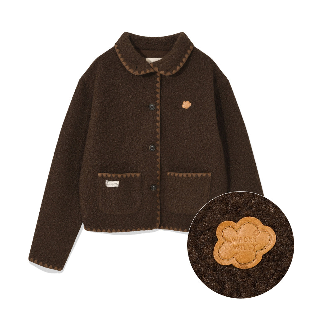 Add Pigment-Washed Appliqué Hooded Zip-Up Brown to the cart