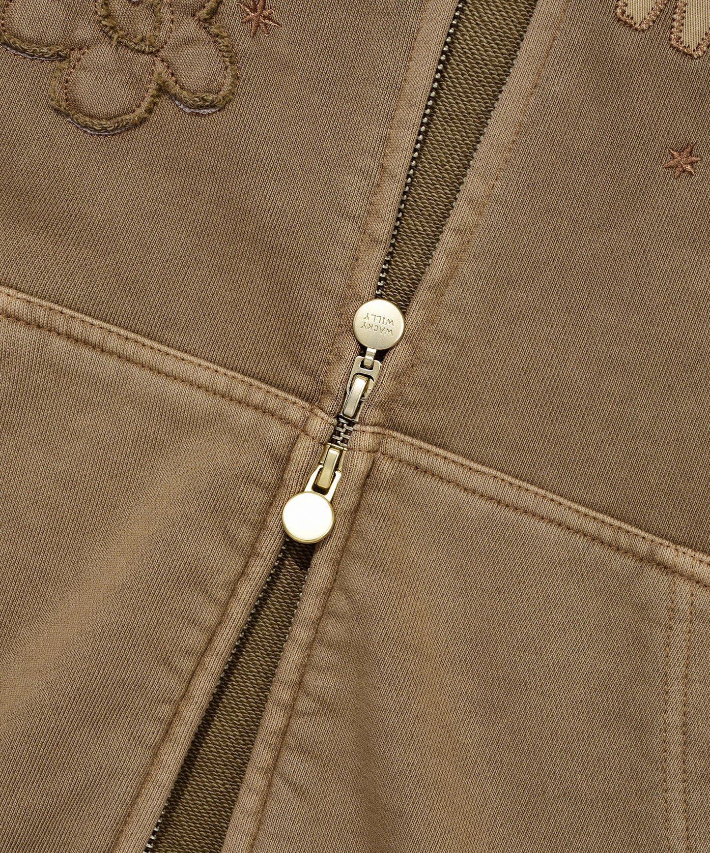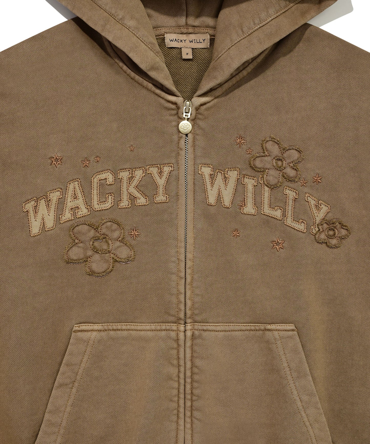 Pigment-Washed Appliqué Hooded Zip-Up Brown