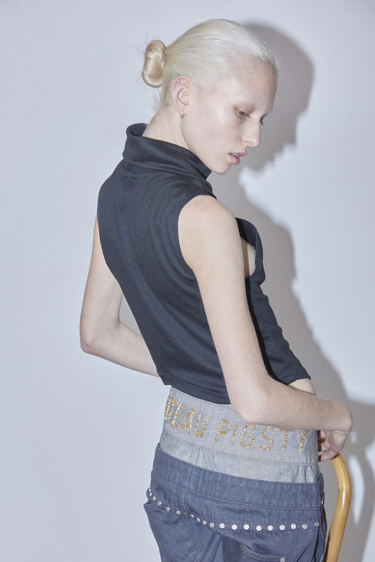 SCULPTOR Beaded Layered Denim Pants Nonfade Gray